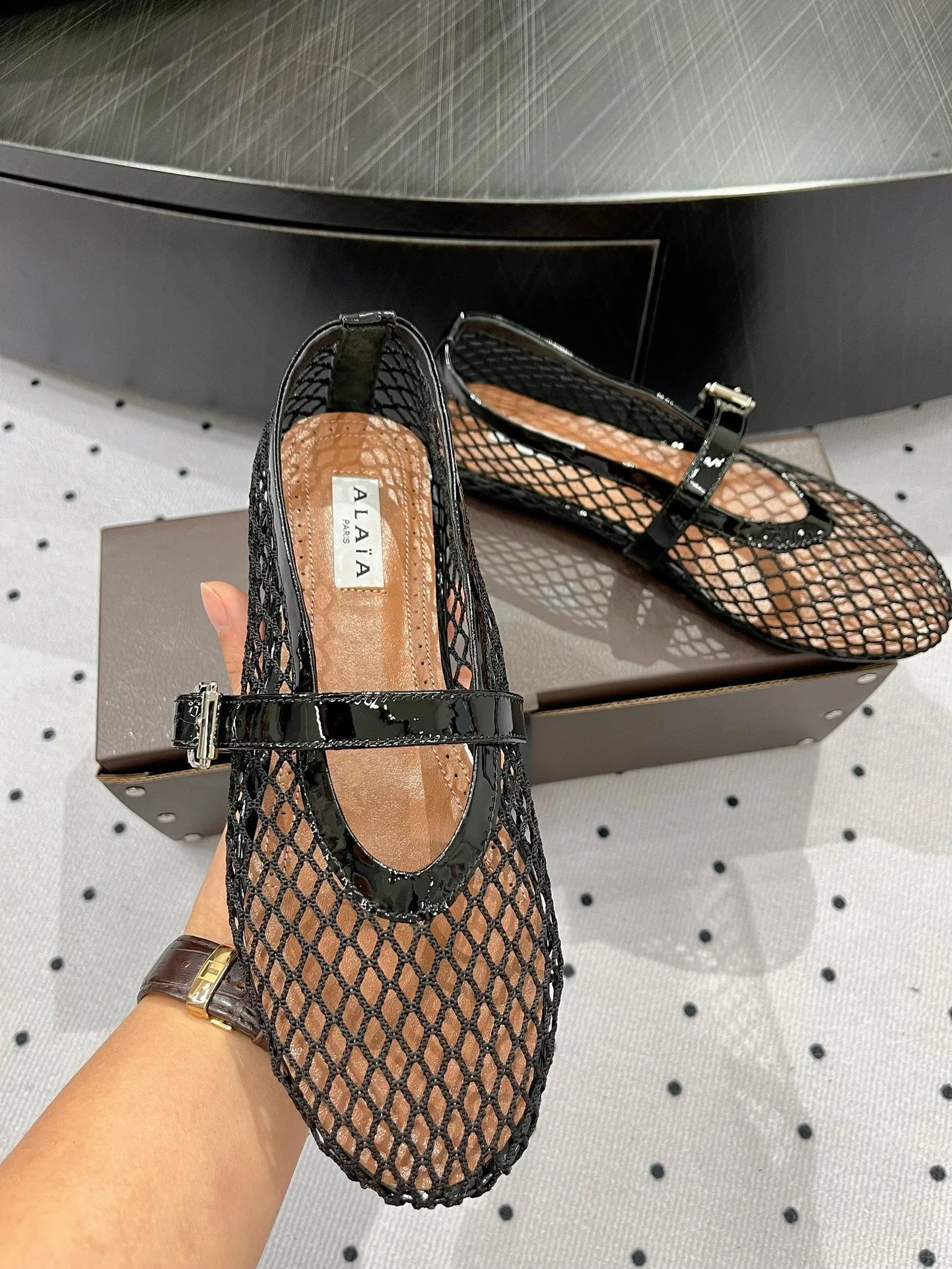 alaia ballet flat fishnet black lambskin - Image 8