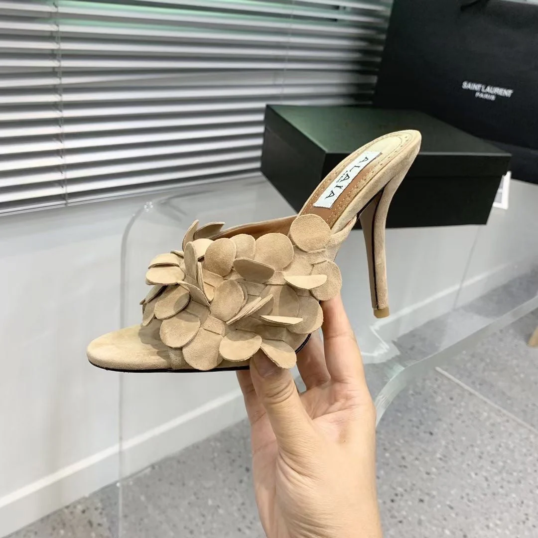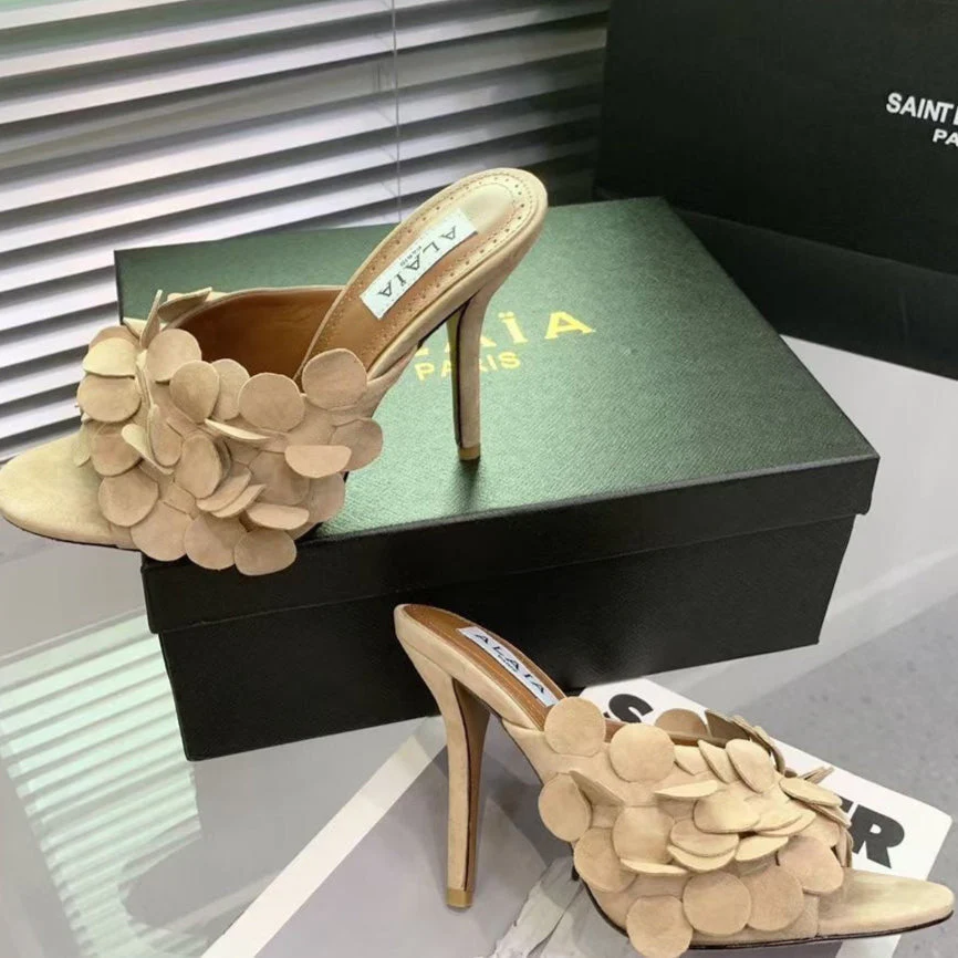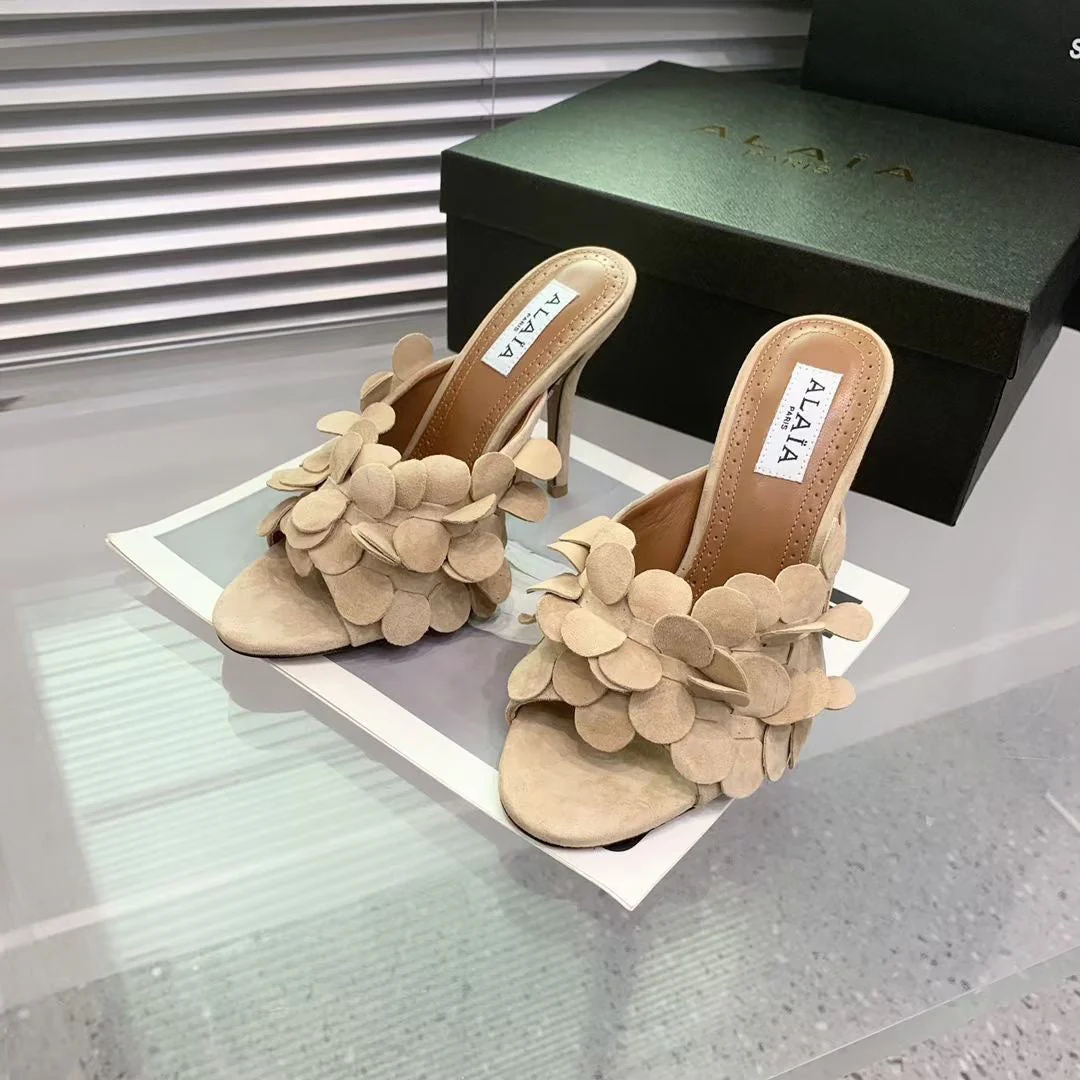 Alaia Confetti Leather Mules Pale Yellow Sheepskin Cowhide 293167