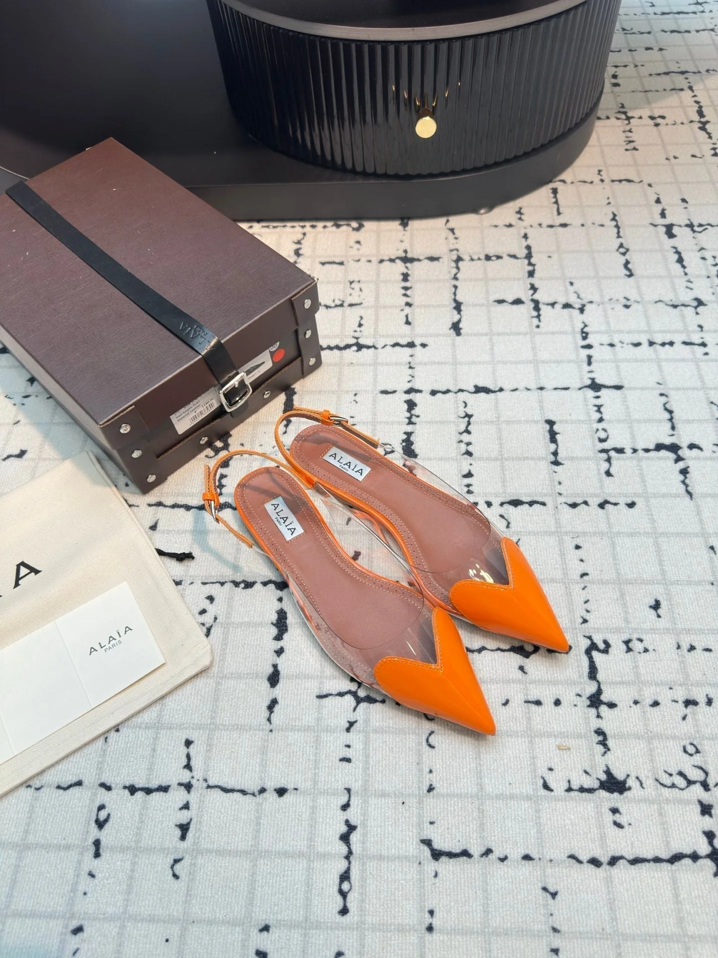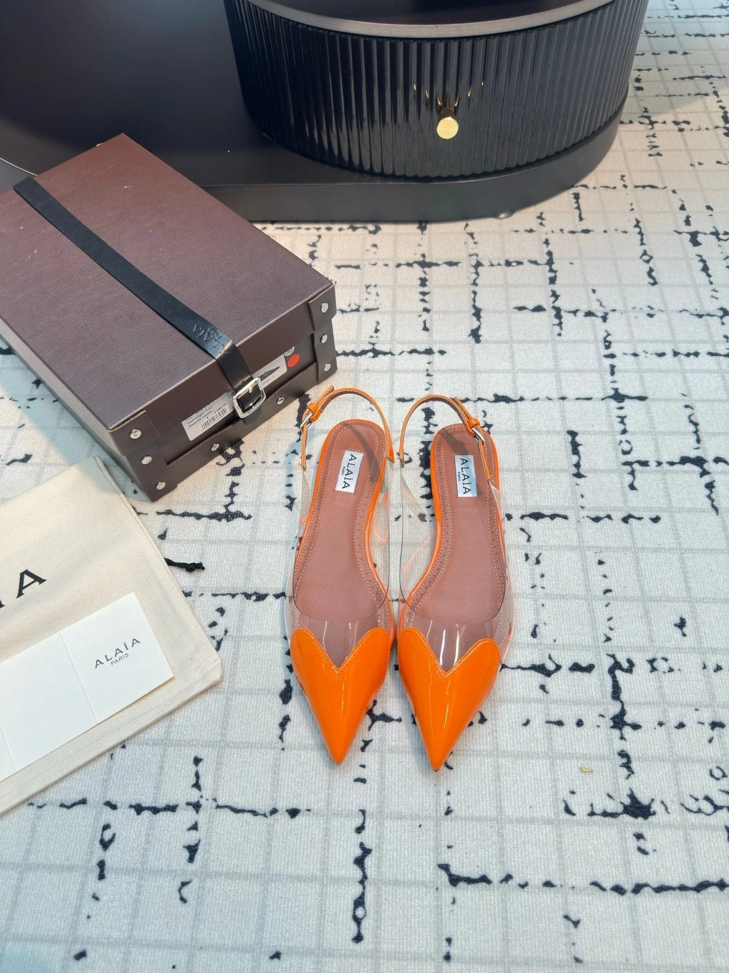 ALAIA FLAT SLINGBACK IN TIGER ORANGE PATENT CALFSKIN AND FILM