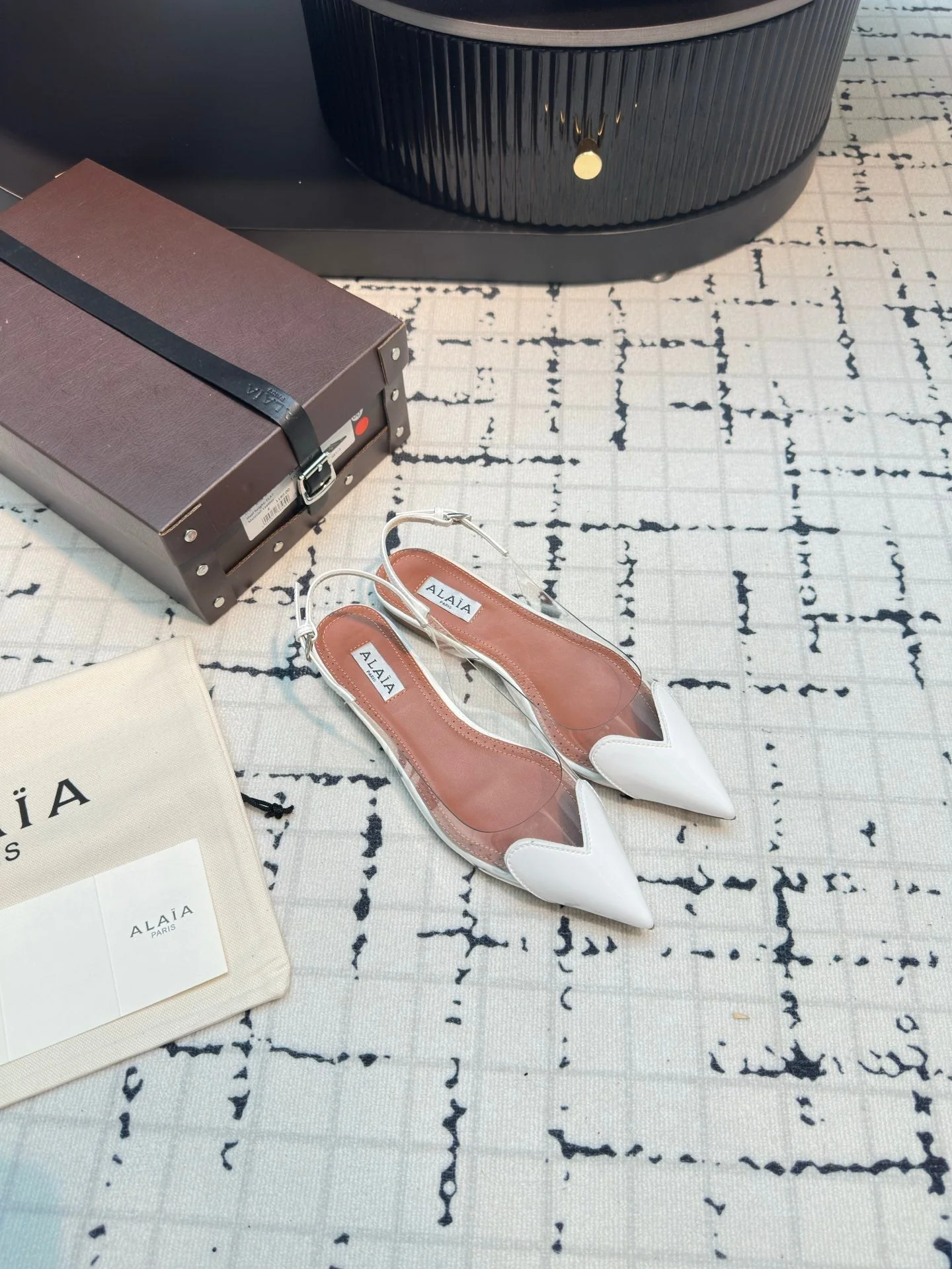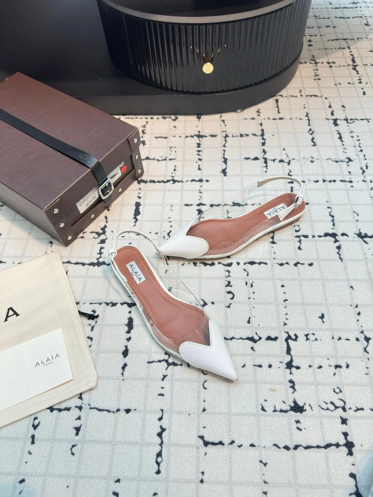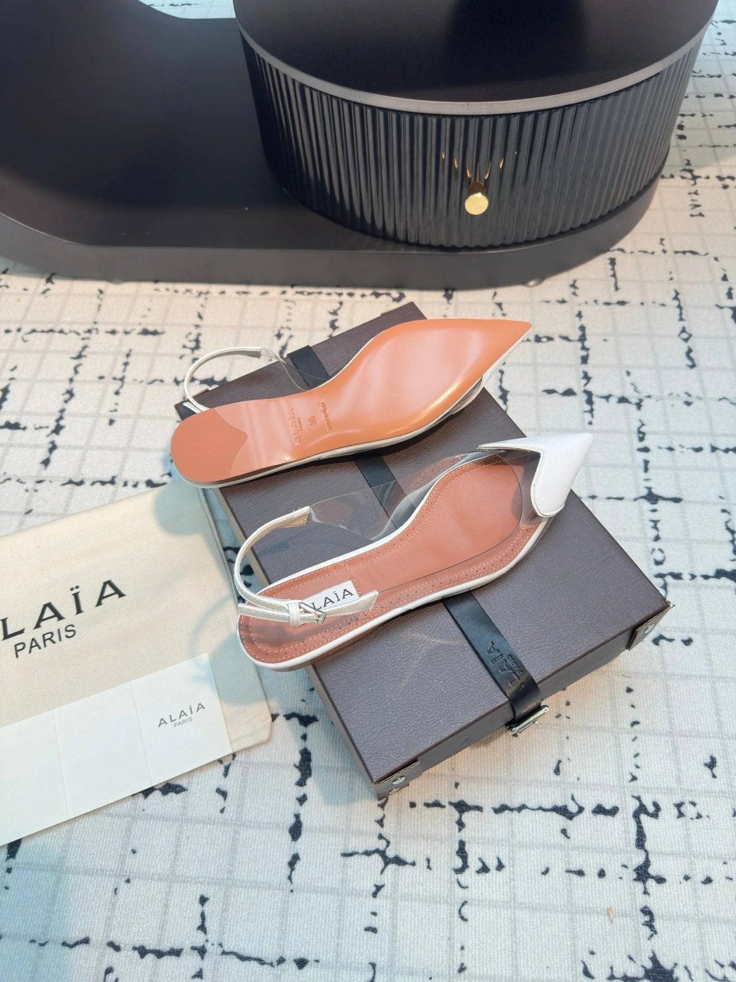 ALAIA FLAT SLINGBACK IN WHITE PATENT CALFSKIN AND FILM