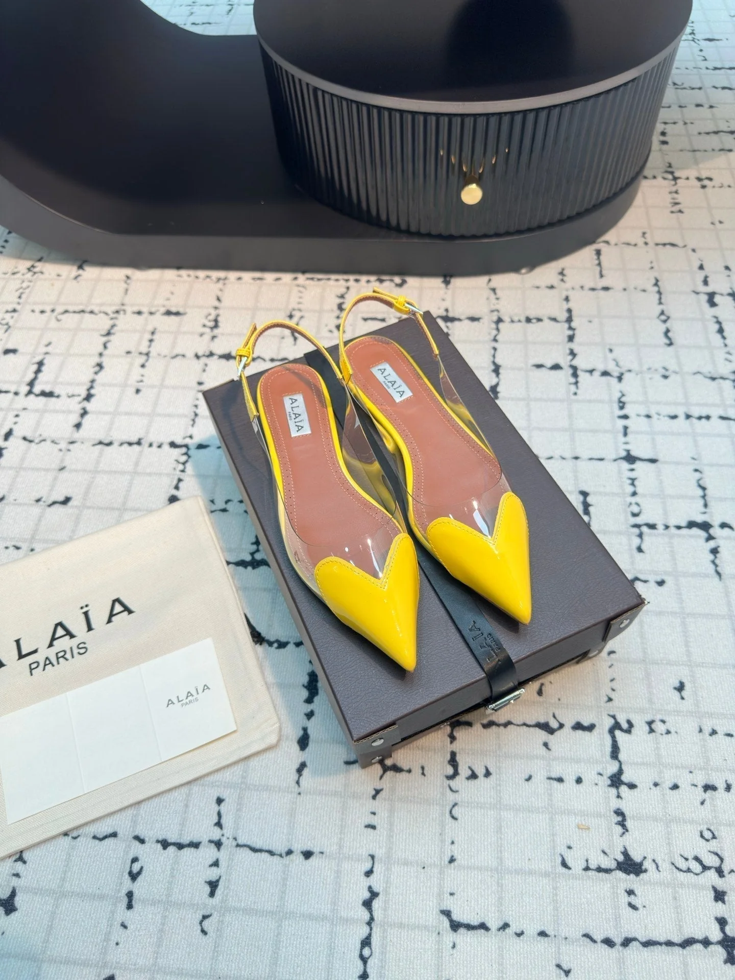 ALAIA FLAT SLINGBACK IN YELLOW PATENT CALFSKIN AND FILM