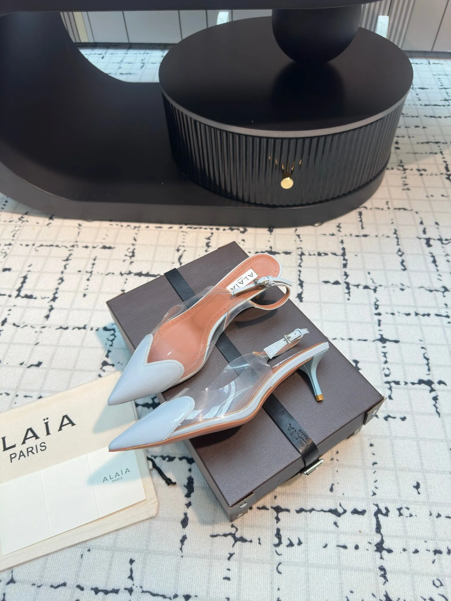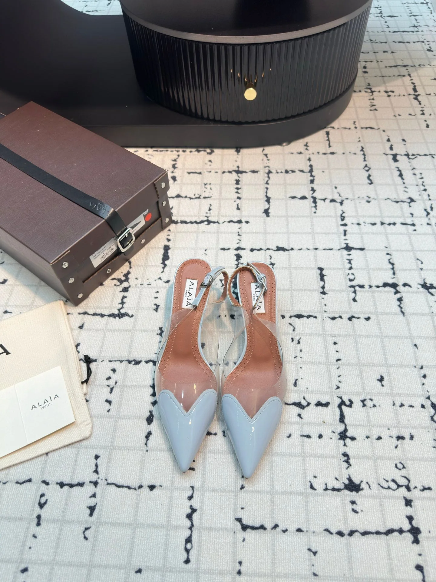 Alaia Heart 50mm Heels Slingbacks Blue Sheepskin 810208