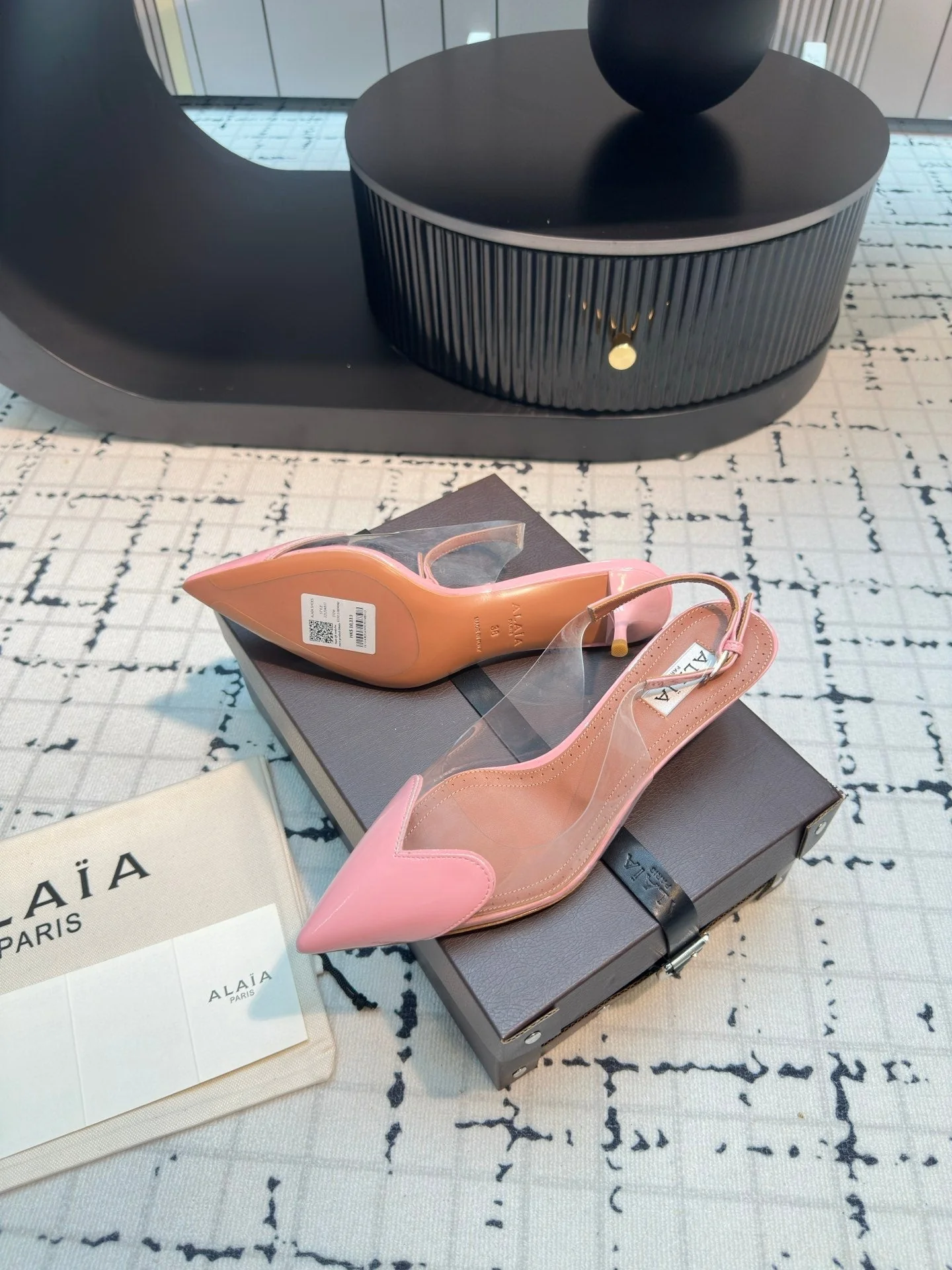 Alaia Heart 50mm Heels Slingbacks Pink Sheepskin 810201