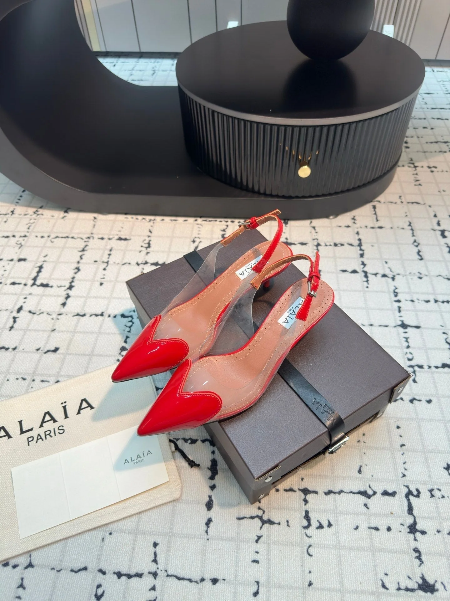 Alaia Heart 50mm Heels Slingbacks Red Sheepskin 810206