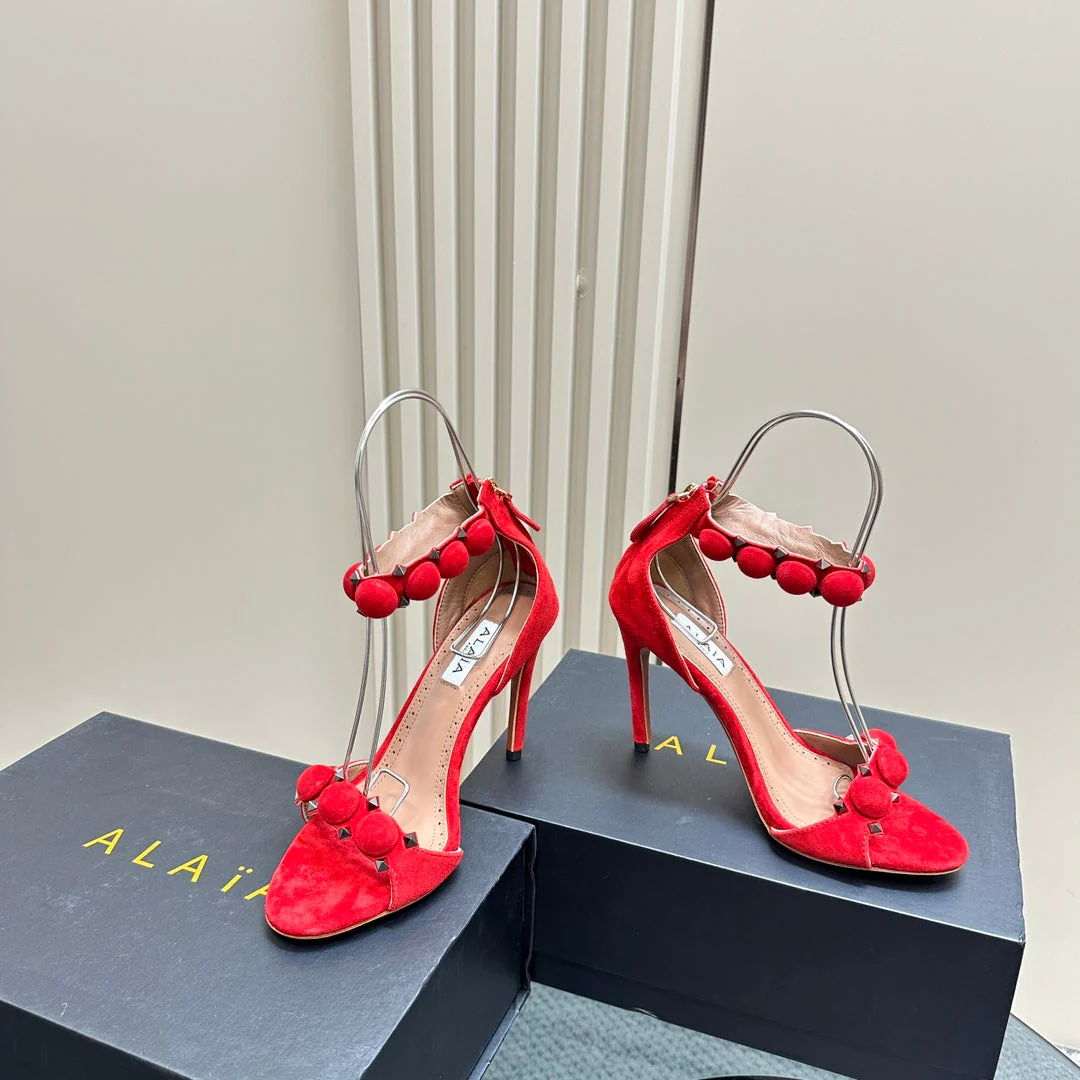 ALAIA HIGH HEEL SANDAL 10 CM IN CHERRY RED SUEDE