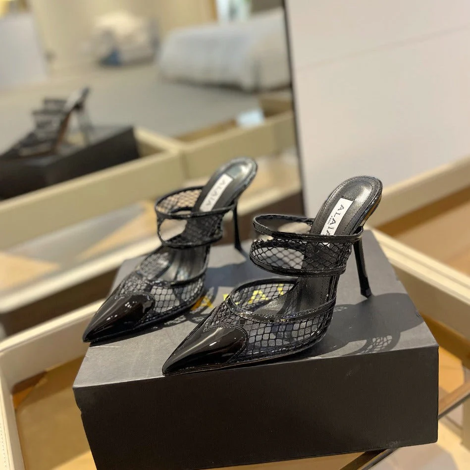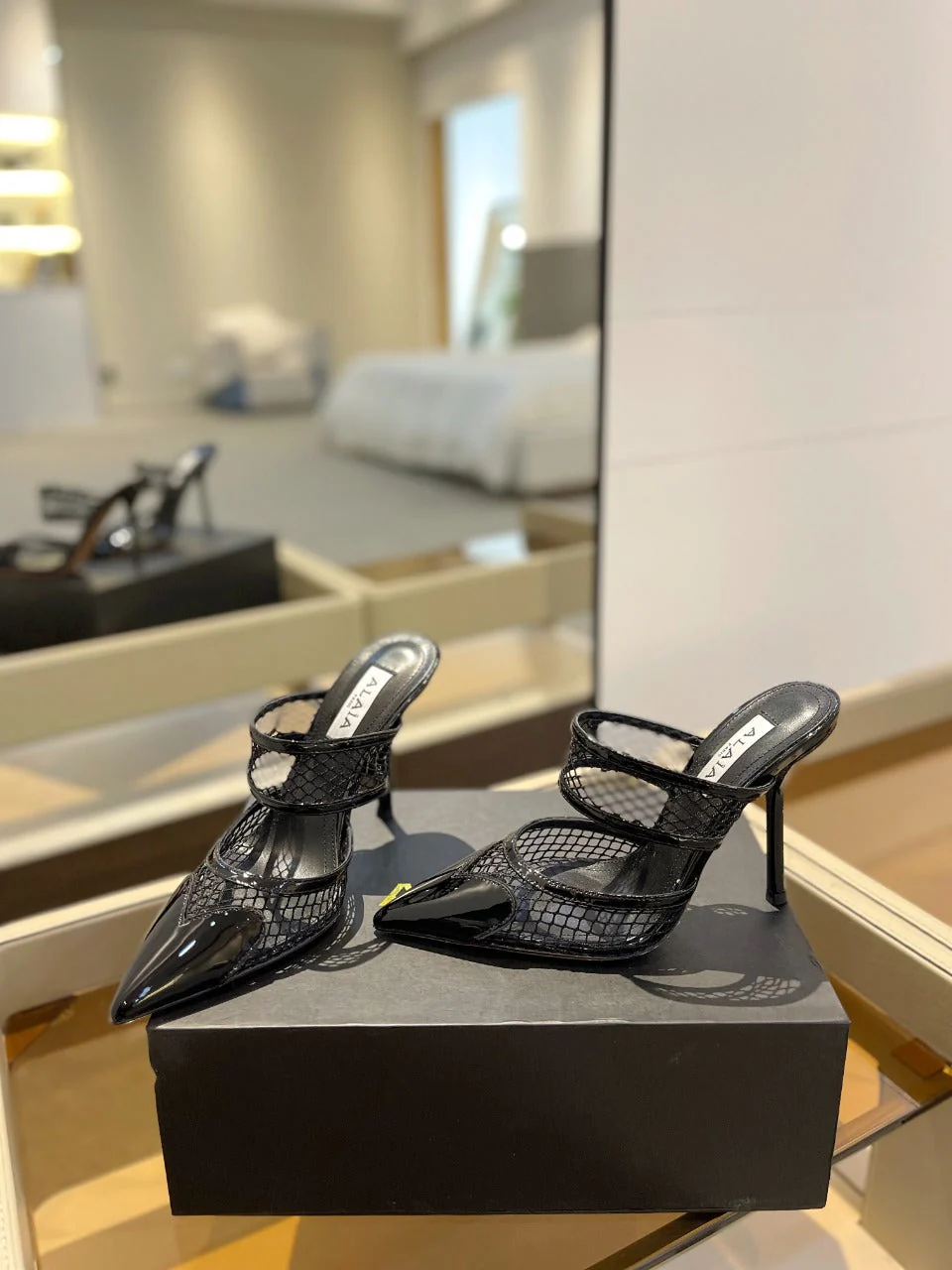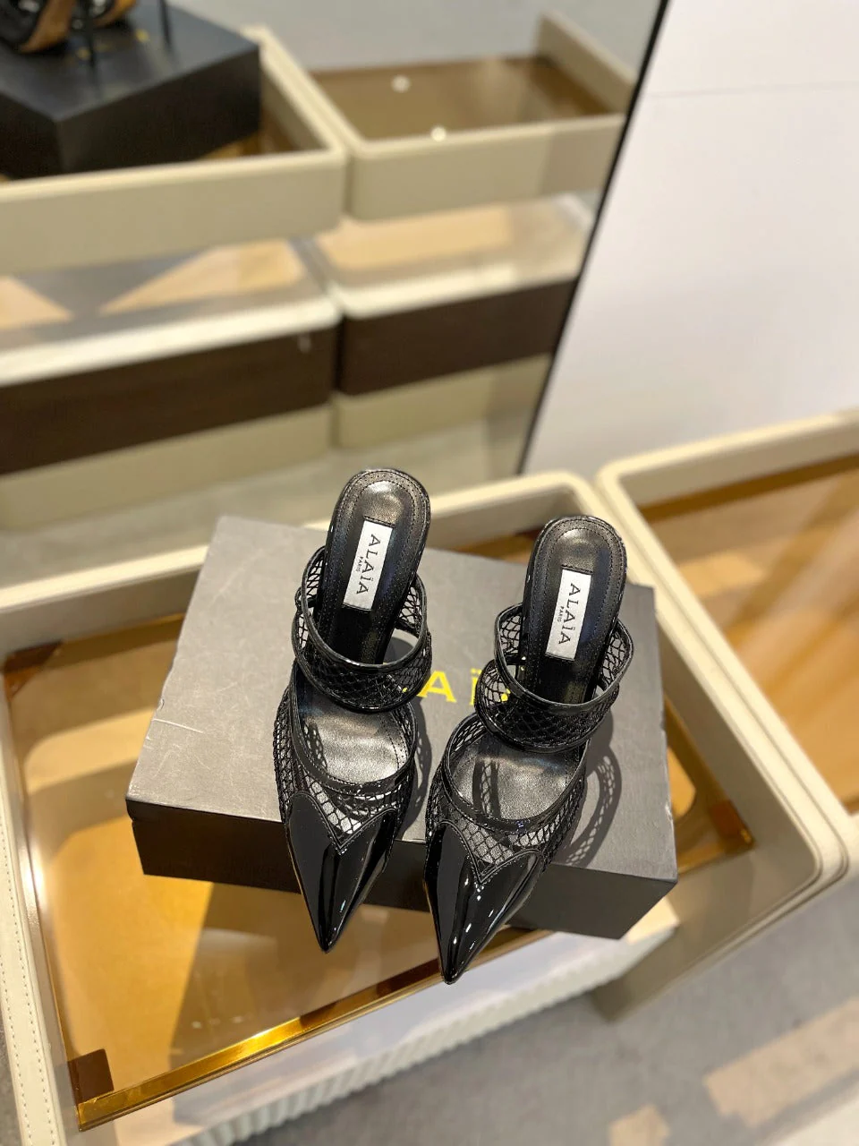 alaia mule 110 fishnet black heart lambskin - Image 4