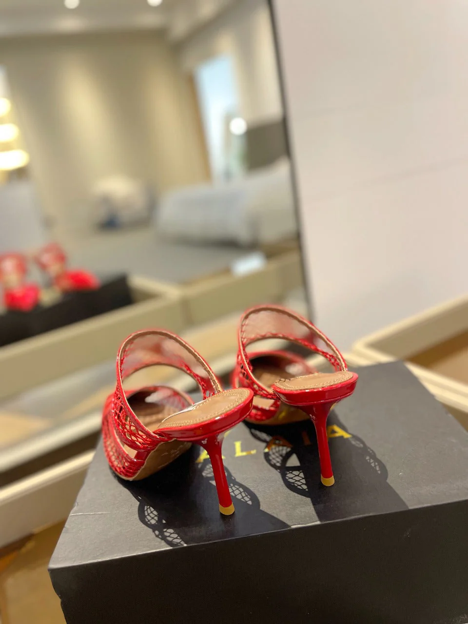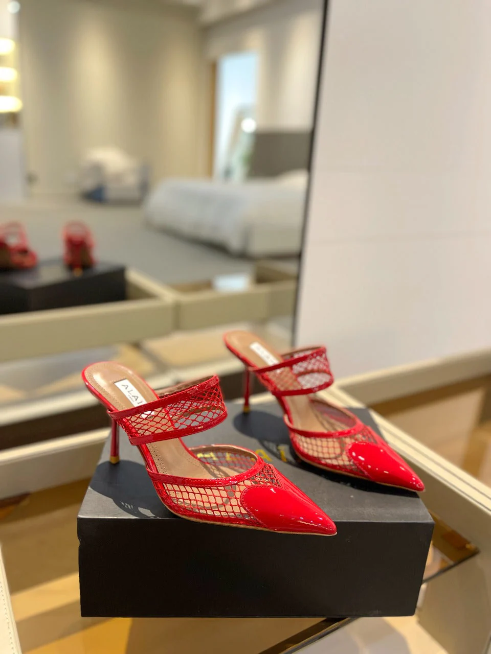 alaia mule 85 fishnet red heart lambskin - Image 4