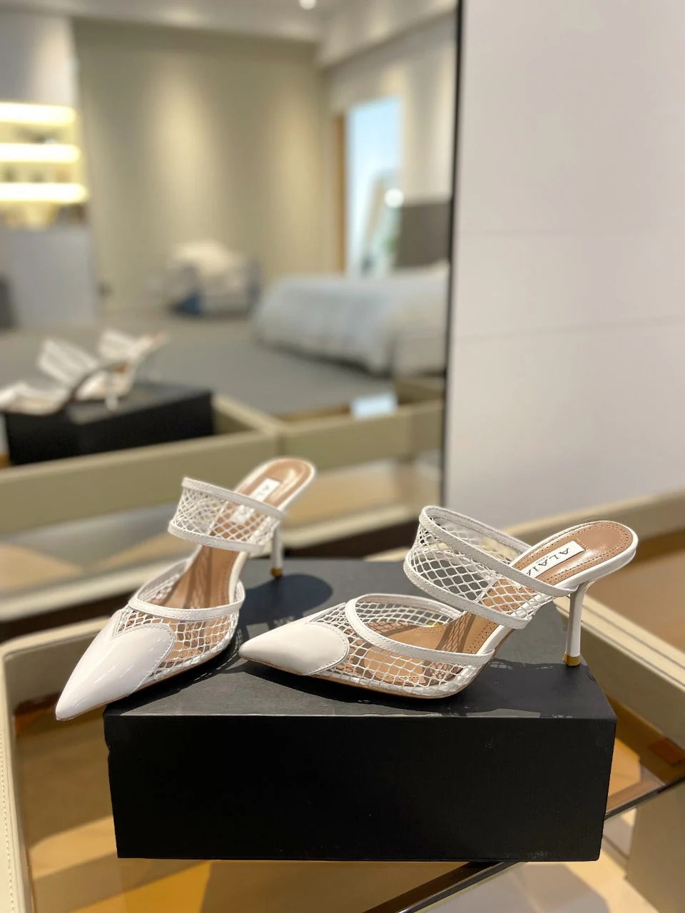 alaia mule 85 fishnet white heart lambskin - Image 2