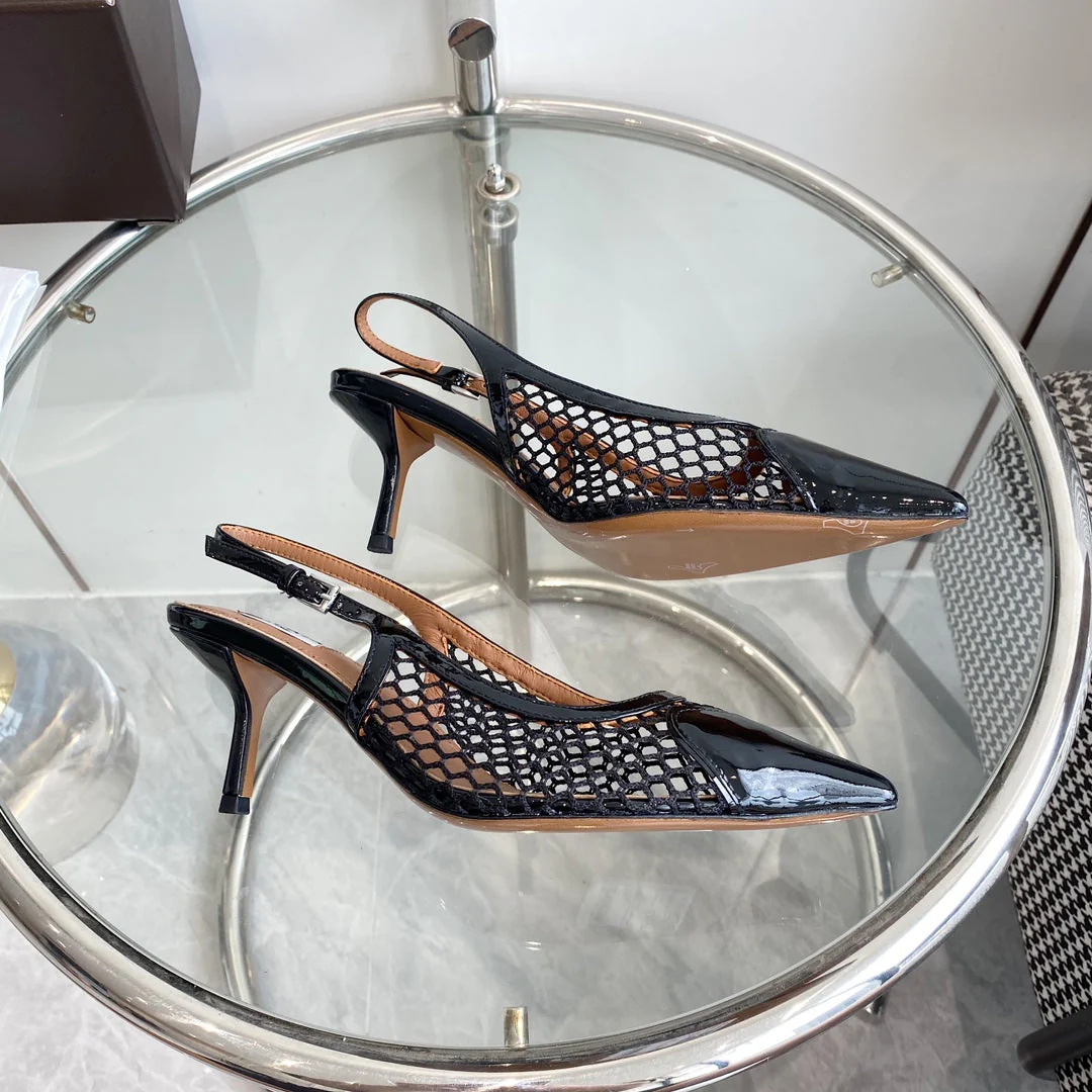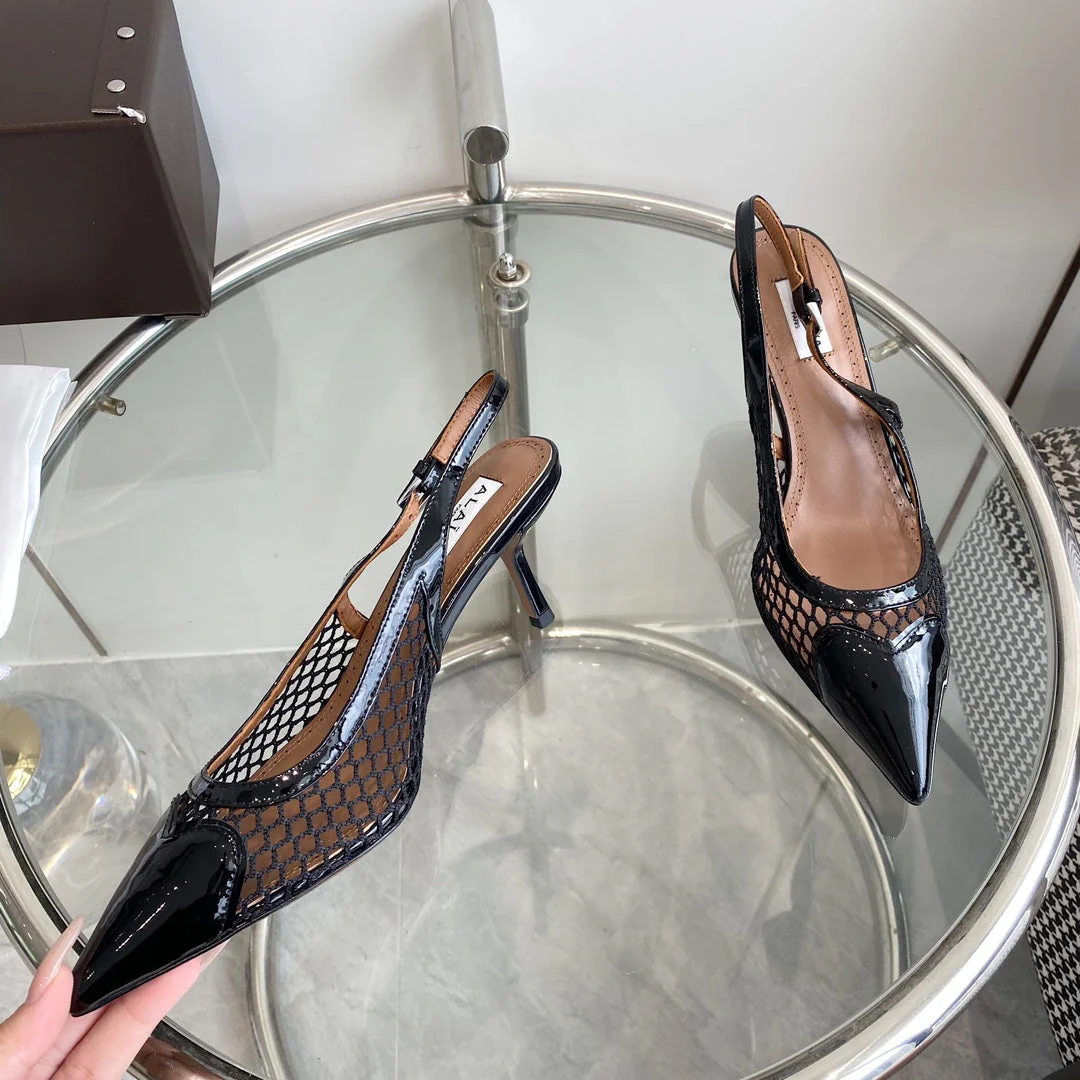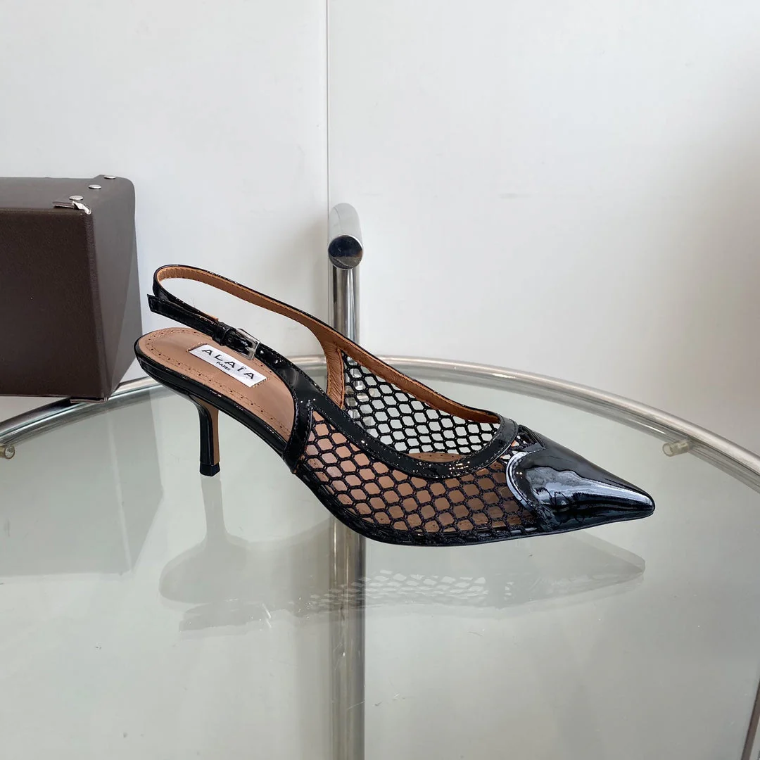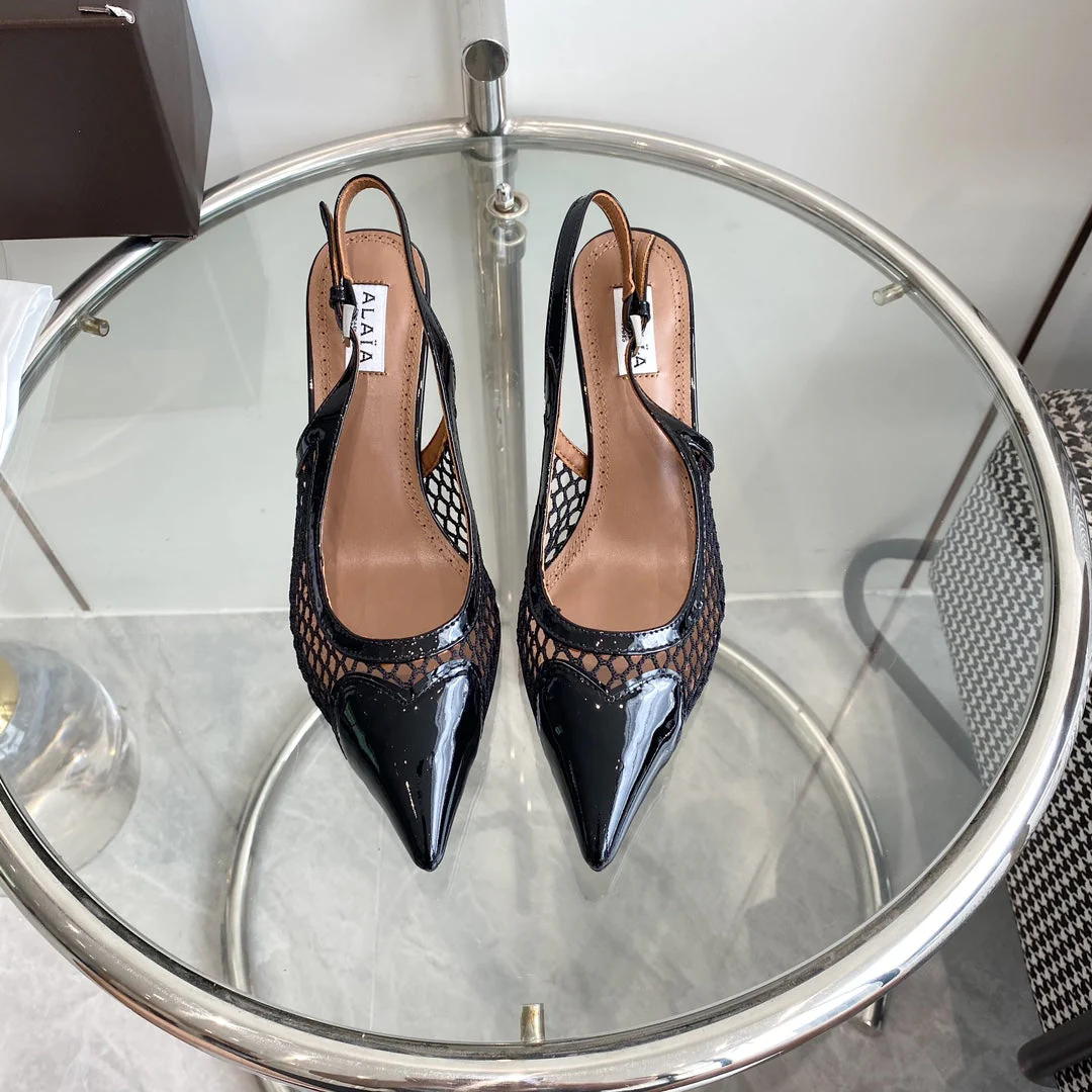 alaia slingbacks 60 fishnet black heart lambskin - Image 7