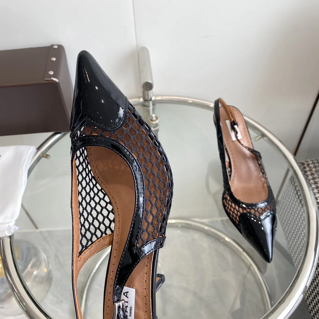 alaia slingbacks 60 fishnet black heart lambskin - Image 2