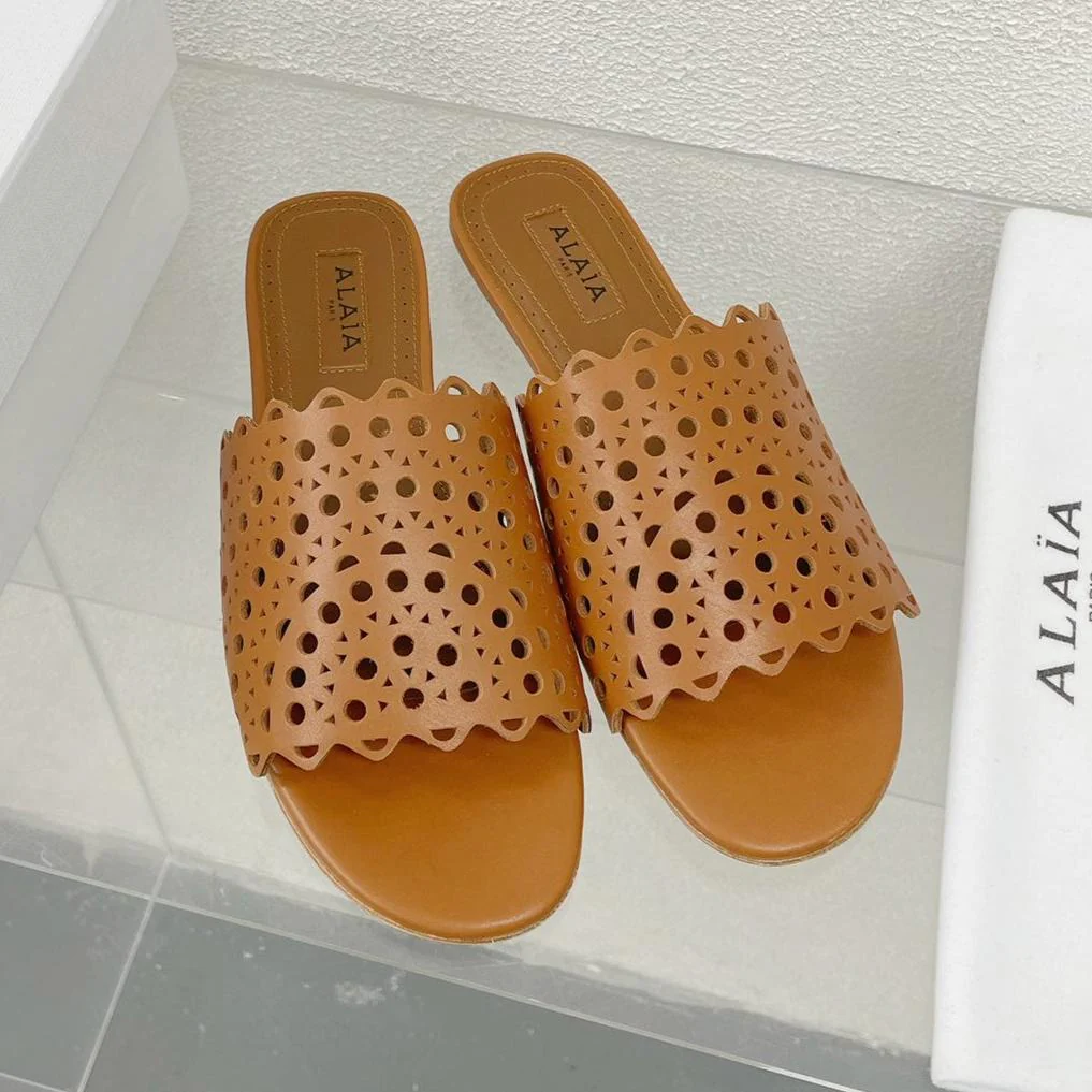 ALAIA VIENNE FLAT MULES IN CHOCOLATE BROWN LAMBSKIN