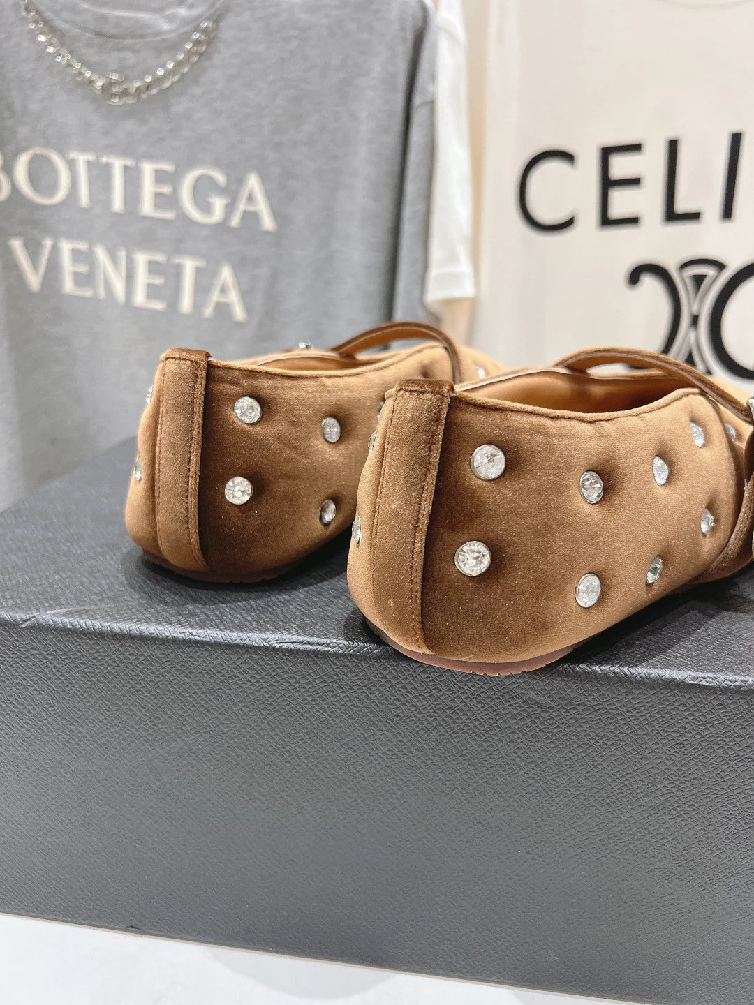 • Material: Velvet With Rhinestones, Lambskin