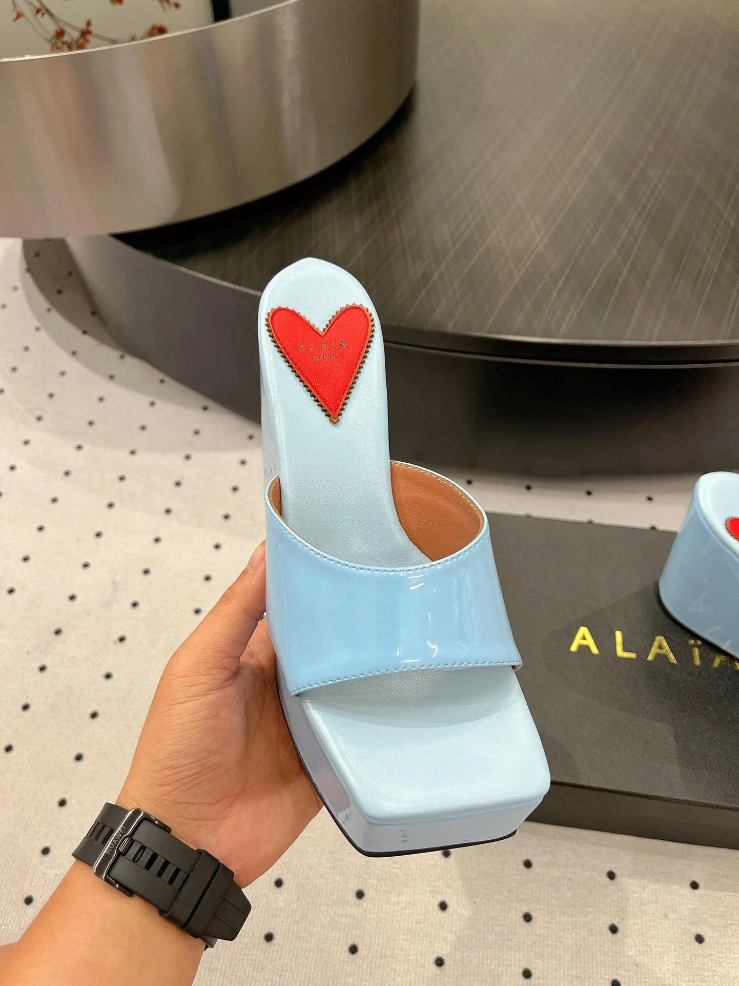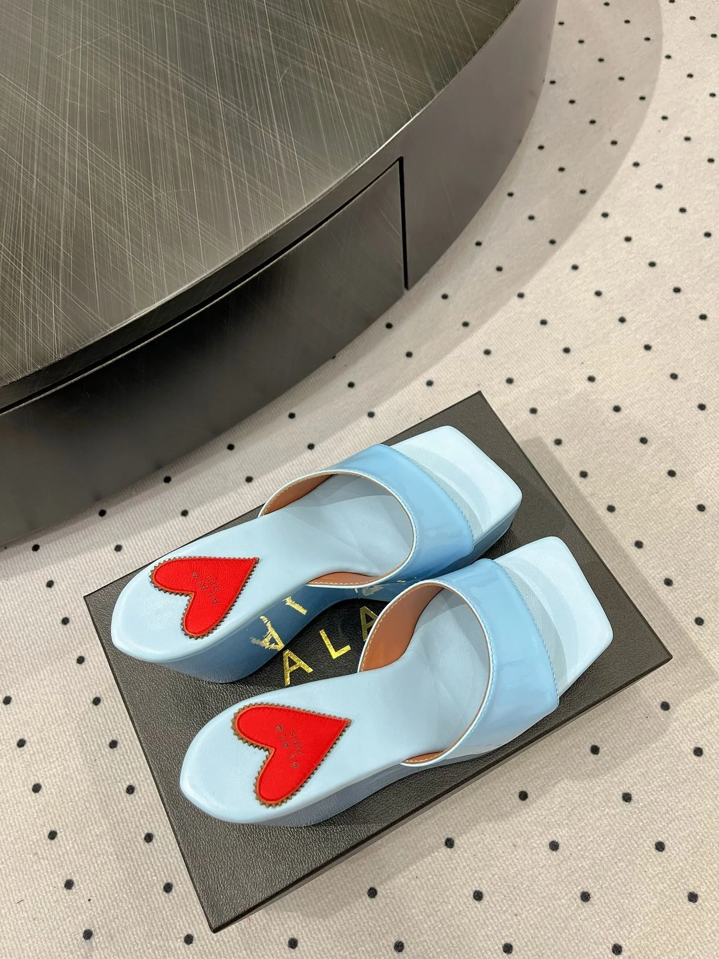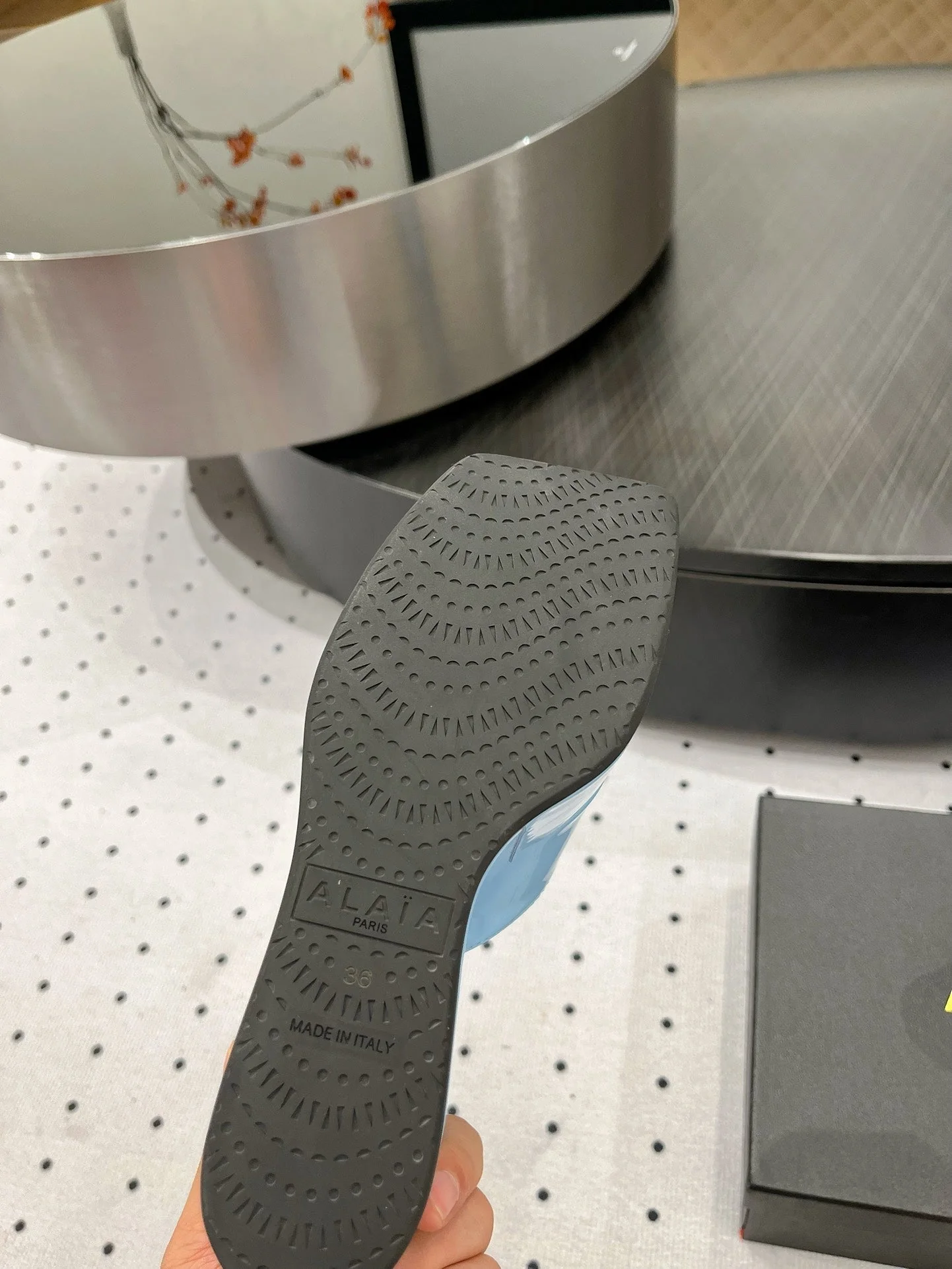 Alaila High Sandal 115mm In Could Blue Glossy Lambskin 954868