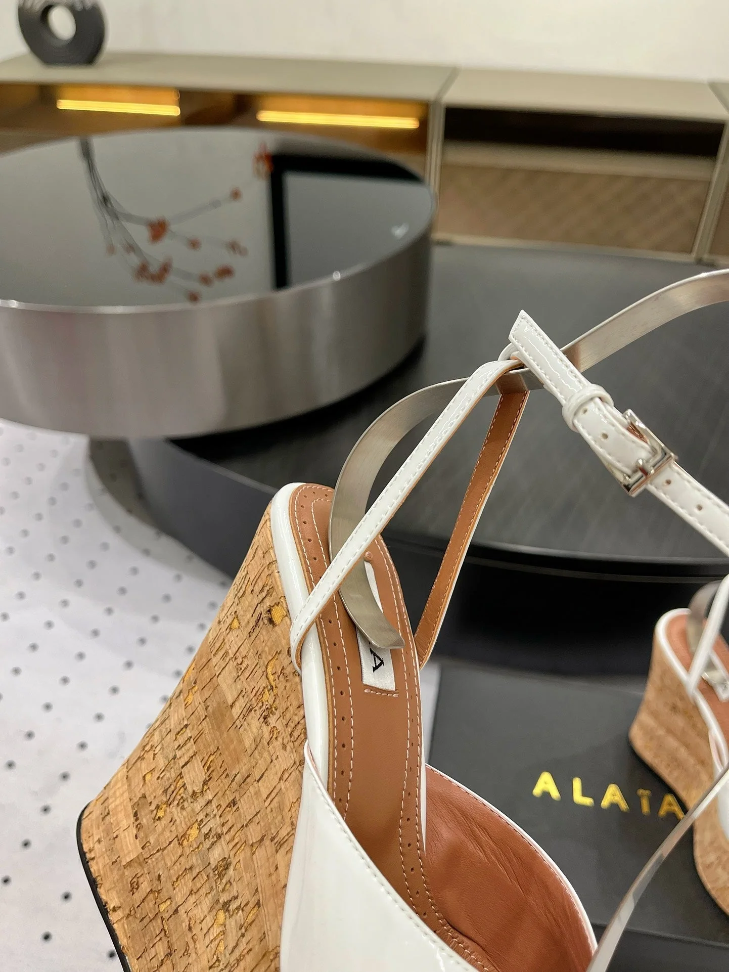 Alaila Wedge Sandals 115mm In White Glossy Lambskin 954889