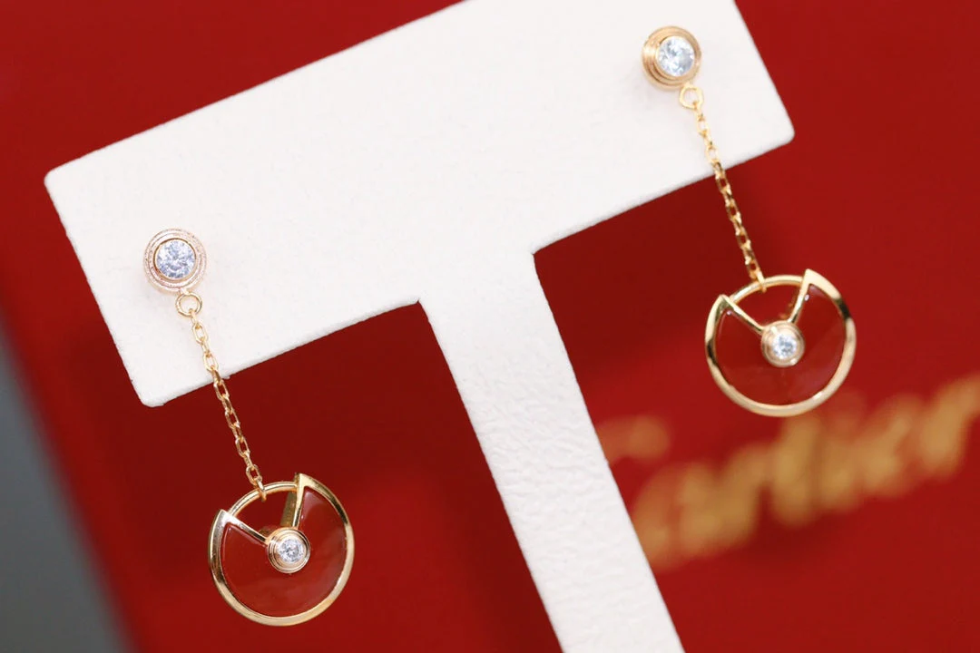 AMULETTE DROP EARRINGS CARNELIAN PINK GOLD