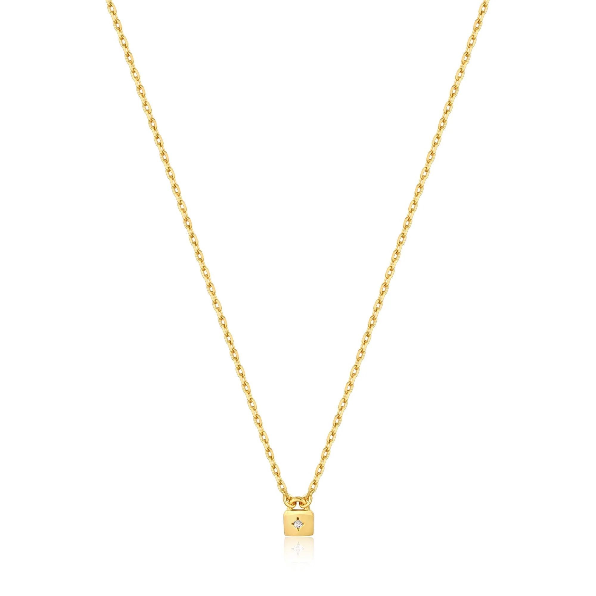 The Ania Haie Gold Padlock Necklace brings modern elegance to your jewelry collection. Crafted with 14kt gold plating on sterling silver, it pairs lasting durability with rich, opulent shine. The delicate padlock pendant adds a subtle statement to any ensemble, while the adjustable 350mm chain with a 50mm extender ensures a comfortable fit. Lightweight at just 1.6g, this designer piece embodies sophistication and effortless style, reflecting both current trends and the distinctive aesthetic of Ania Haie. Perfect for layering or wearing on its own, it redefines the classic women’s necklace with an elevated, contemporary touch.