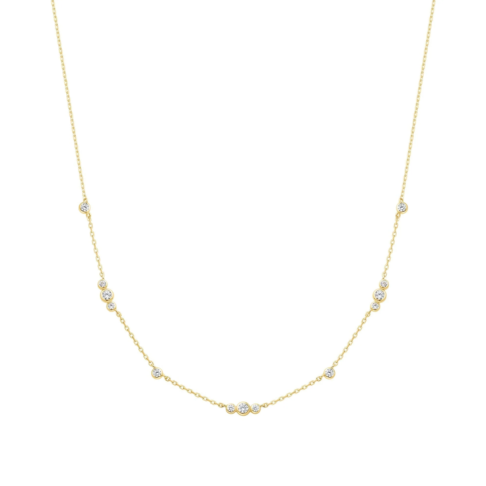 Elevate your style with the Ania Haie Gold Sparkling Bezel Cubic Zirconia Station Necklace, a signature piece in fine women’s jewelry. Crafted from 925 sterling silver and beautifully finished in a radiant gold tone, this necklace features delicately spaced bezel-set cubic zirconia stones that shimmer gracefully with every movement. The refined station design exudes a sense of modern elegance and sophistication, making it a versatile accessory suited for both casual and evening wear. Showcasing exceptional craftsmanship and contemporary flair, this necklace captures the essence of Ania Haie’s trend-led luxury, perfect for those who appreciate subtle yet striking details.