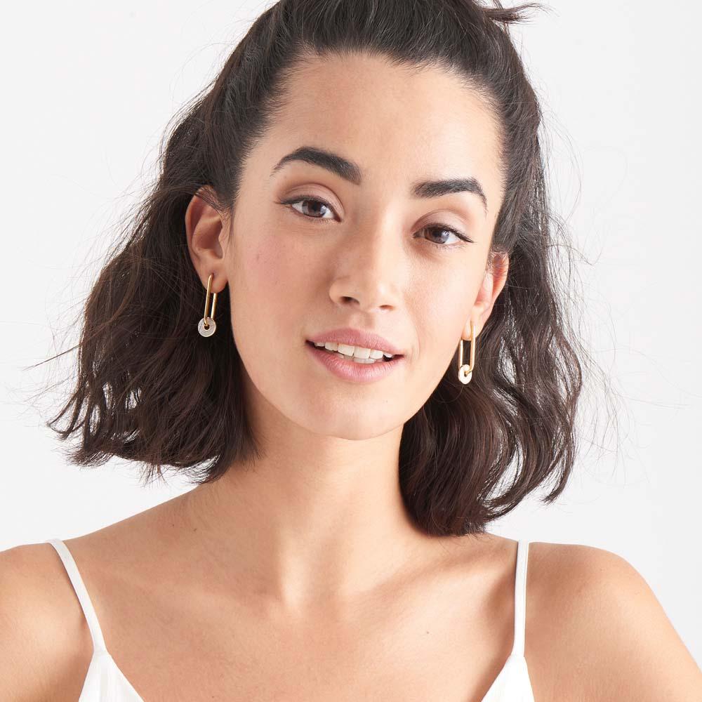 These Ania Haie Mother Of Pearl Disc Hoop Earrings bring a refined touch to every occasion, blending 925 sterling silver and radiant 14kt gold plating for a stunning balance of durability and style. Each earring features a perfectly circular Mother of Pearl disc, admired for its iridescent beauty and natural elegance, highlighted by its generous diameter. The design captures modern trends while feeling timeless and versatile, making these earrings an ideal statement accessory for both casual outings and special events. With a comfortable length that ensures easy wear all day, this signature pair from Ania Haie stands out in any jewelry collection for those who appreciate luxury with contemporary flair.