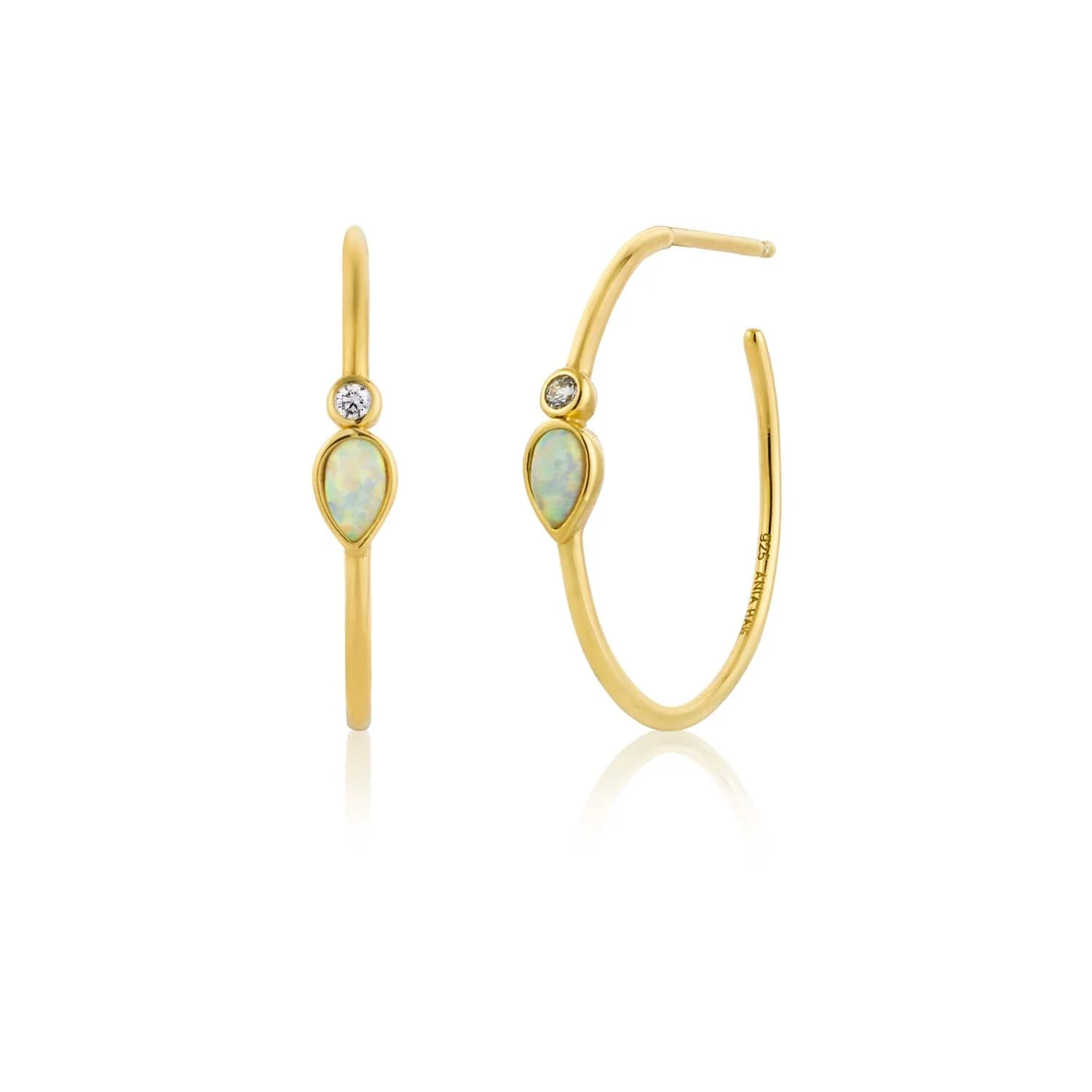 Elevate your style with the Ania Haie Opal Colour Raindrop Hoop Earrings, crafted from 925 sterling silver and finished with a luxurious 14kt gold plating. Showcasing delicate tear-drop opal stones paired with a brilliant round CZ accent, these hoop earrings exude modern elegance and subtle opalescent charm. The graceful proportions and refined butterfly clasp create a seamless fit, making them an ideal choice for any occasion. From Ania Haie’s exclusive collection, this jewelry piece captures the latest trends while promising distinctive character and radiant sophistication for your wardrobe.