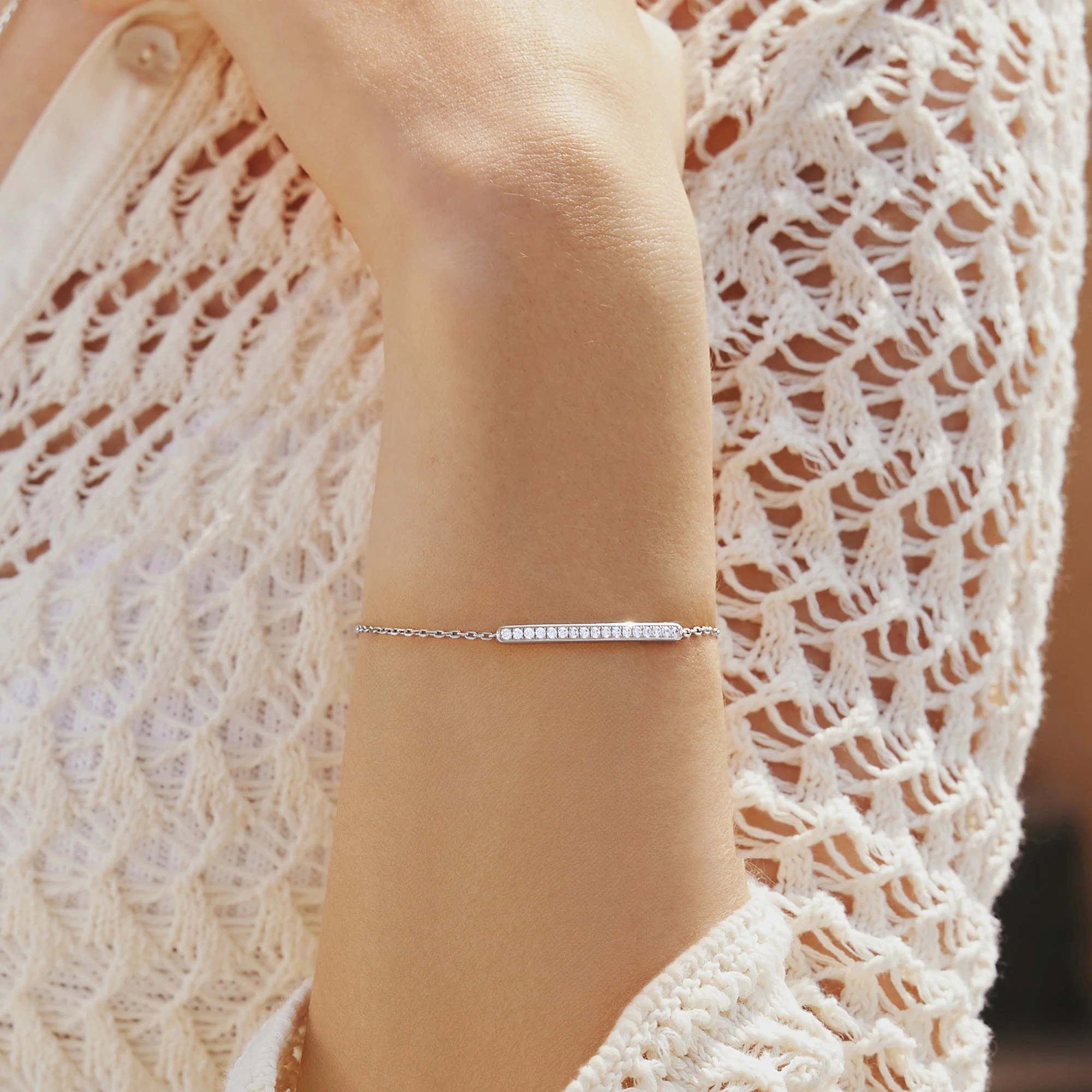 This Ania Haie Silver Pave Bar Bracelet defines contemporary elegance with its slender sterling silver chain and beautifully polished pave bar. The subtle shimmer from delicate stones elevates its minimalist design, making it the perfect luxury bracelet for daily wear or special occasions. Renowned for artistry and innovation, Ania Haie delivers a piece that radiates sophistication and enduring style, ideal for stacking or as a refined statement on its own. A stunning addition to any jewelry collection, this modern bracelet effortlessly blends timeless appeal with a fresh, designer edge.