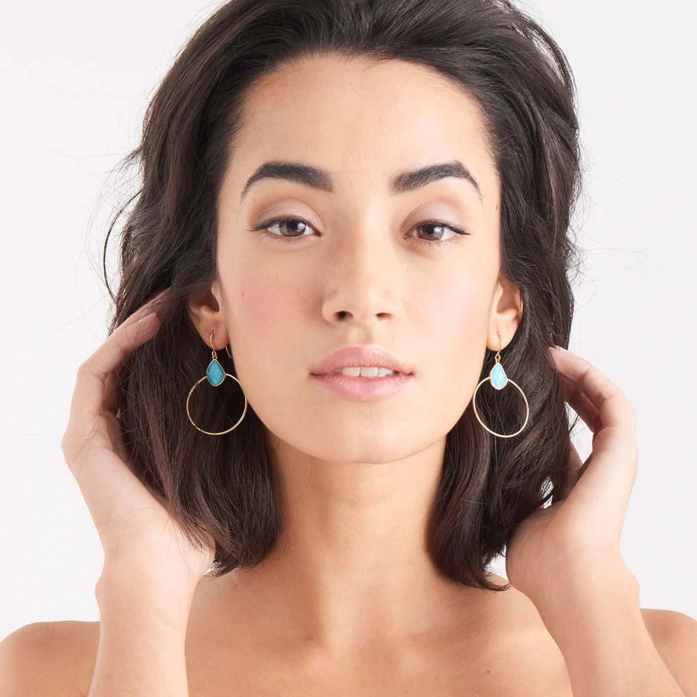 Elevate your jewelry collection with the Ania Haie Turquoise Front Hoop Earrings, blending a contemporary silhouette with timeless charm. Expertly crafted from 925 sterling silver and finished in radiant 14kt gold plating, each hoop is accentuated by an irregular turquoise stone, making every piece unique. The design is lightweight yet striking, measuring 5cm in length and 3cm at its widest point, ensuring effortless comfort and refined appeal. Part of the coveted Mineral Glow collection, these earrings feature a secure butterfly clasp, embodying both style and practicality. Perfect for those who appreciate modern, fashion-forward jewelry, Ania Haie delivers on-trend luxury for every occasion.