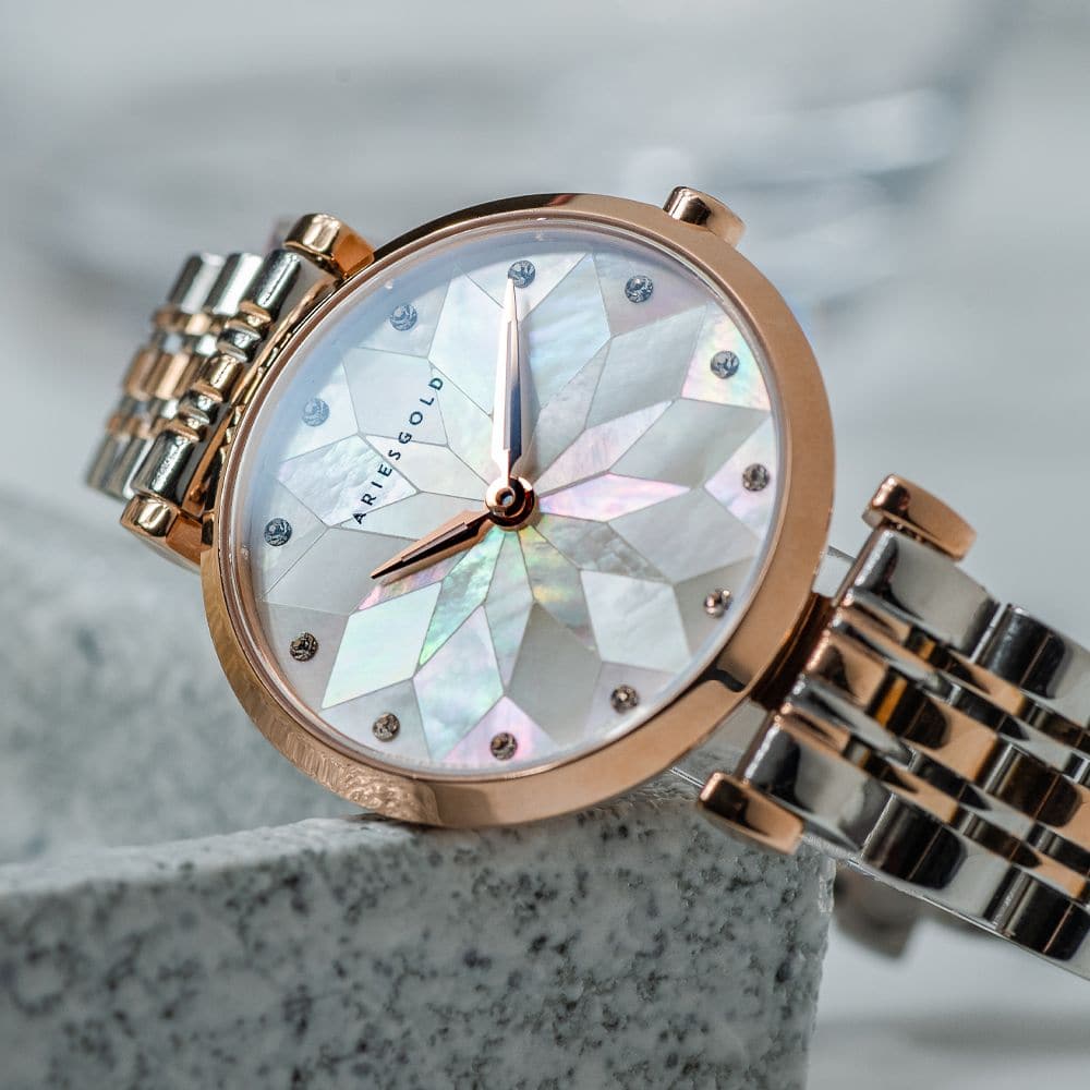 Aries Gold Draliet Two-Tone Stainless Steel Strap Women Majestic Watches L 5042 2TR-P2