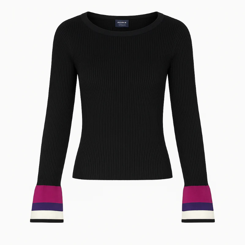 Elevate your casual wardrobe with the exquisite Armani Black Pink & White Ladies Jumper. This stunning piece seamlessly combines comfort and style, making it the perfect addition for any fashion-forward woman’s collection. Crafted from high-quality materials, the jumper ensures a luxurious feel against your skin while providing a chic look.