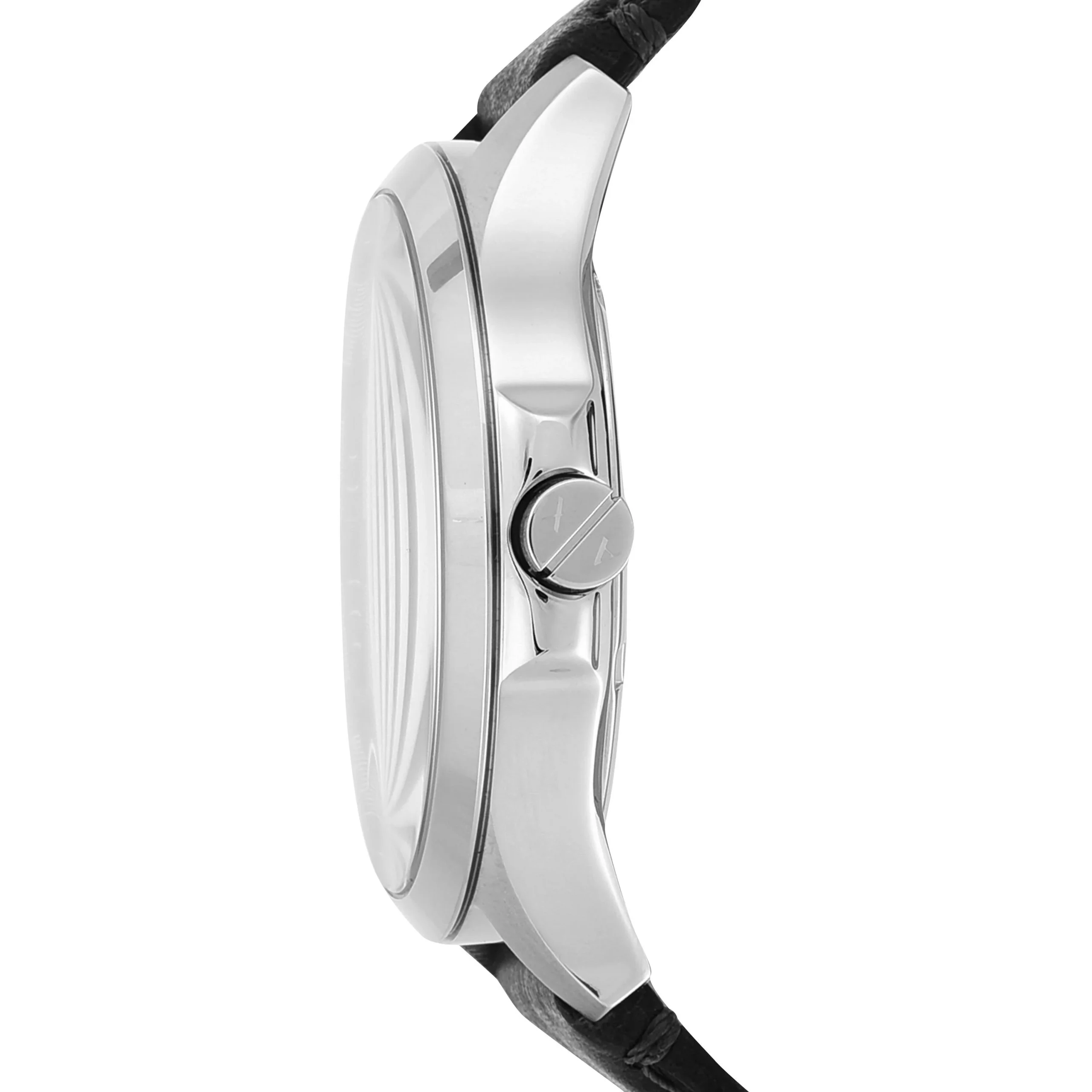Crafted with precision and style, the Armani Exchange AX2101 men’s watch showcases a bold 46mm stainless steel case and a sleek black dial with refined three-hand quartz movement. The brushed dial surface is subtly textured, offering a modern yet timeless design, while the integrated date display adds everyday functionality. A soft black leather strap complements the polished case, offering both comfort and sophistication. Protected by durable mineral crystal glass and water-resistant up to 50 meters, this piece effortlessly balances resilience with elegance. Perfect for those who appreciate understated luxury, this watch reflects the contemporary edge and refined craftsmanship synonymous with the Armani name.