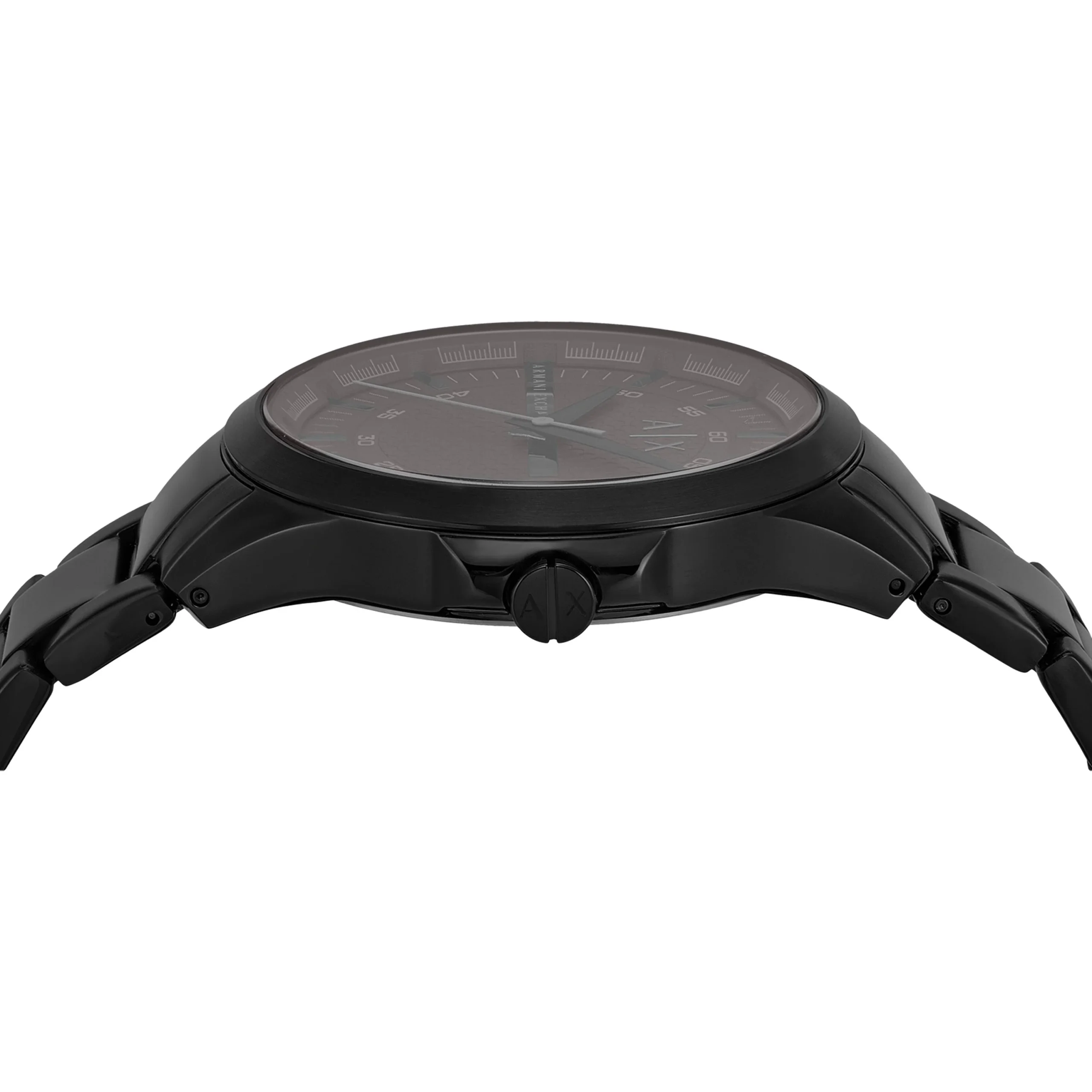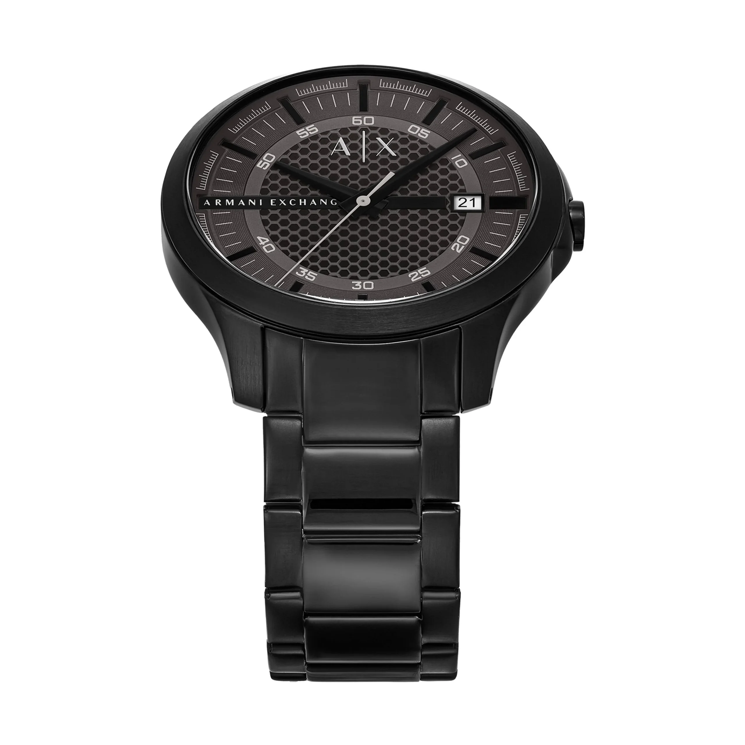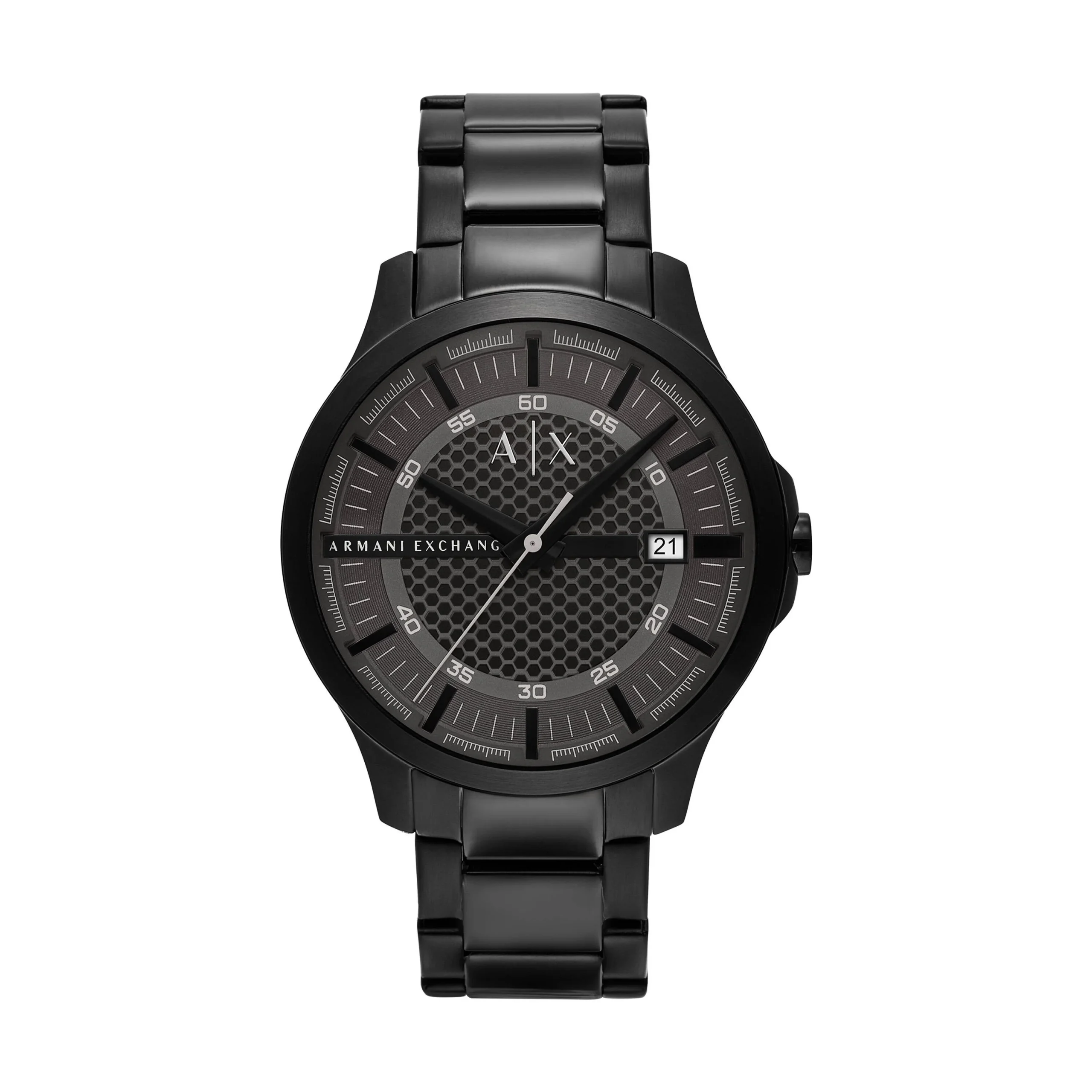 Crafted by Armani, the AX2464 men’s watch showcases refined minimalism with a bold presence. Its 46mm black-tone stainless steel case frames a textured gray dial, delivering a striking contrast that enhances both visual depth and legibility. The sleek three-hand quartz movement ensures reliable timekeeping, complemented by a discreet date window for added function. A smooth black stainless steel bracelet completes the design, offering durability and a seamless finish. With mineral crystal glass and 50 meters of water resistance, this timepiece blends everyday practicality with modern sophistication, making it an ideal choice for those who value understated style and precision craftsmanship.