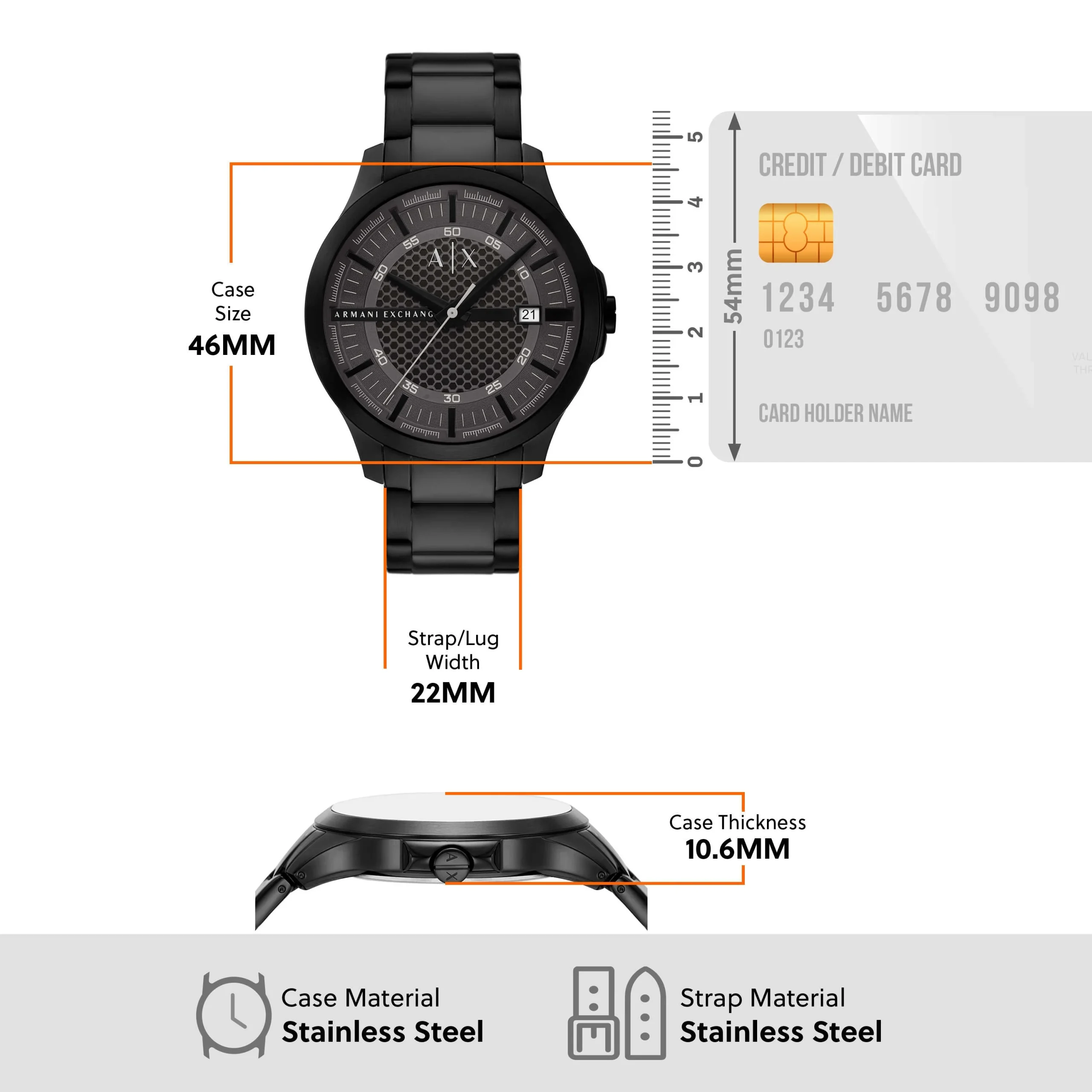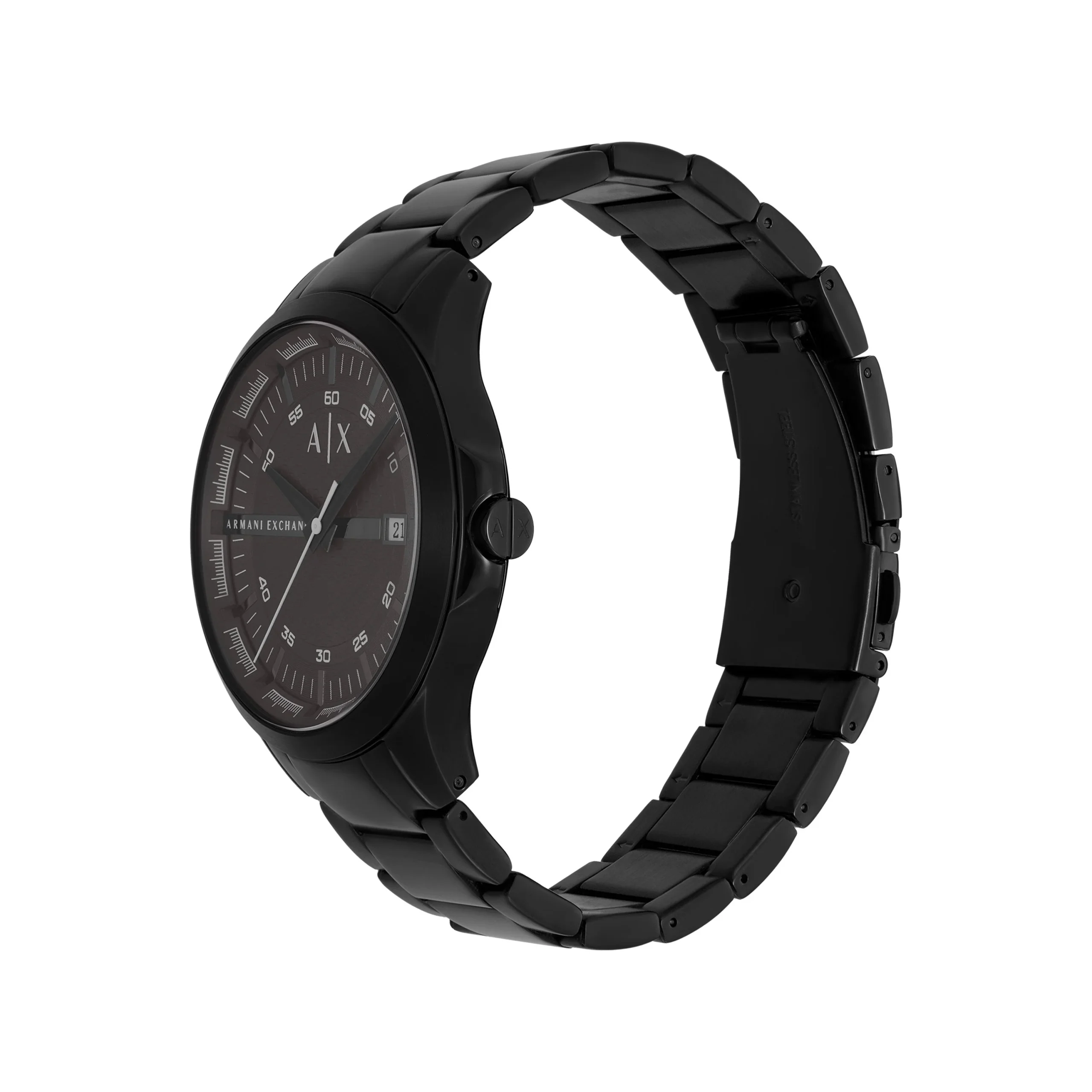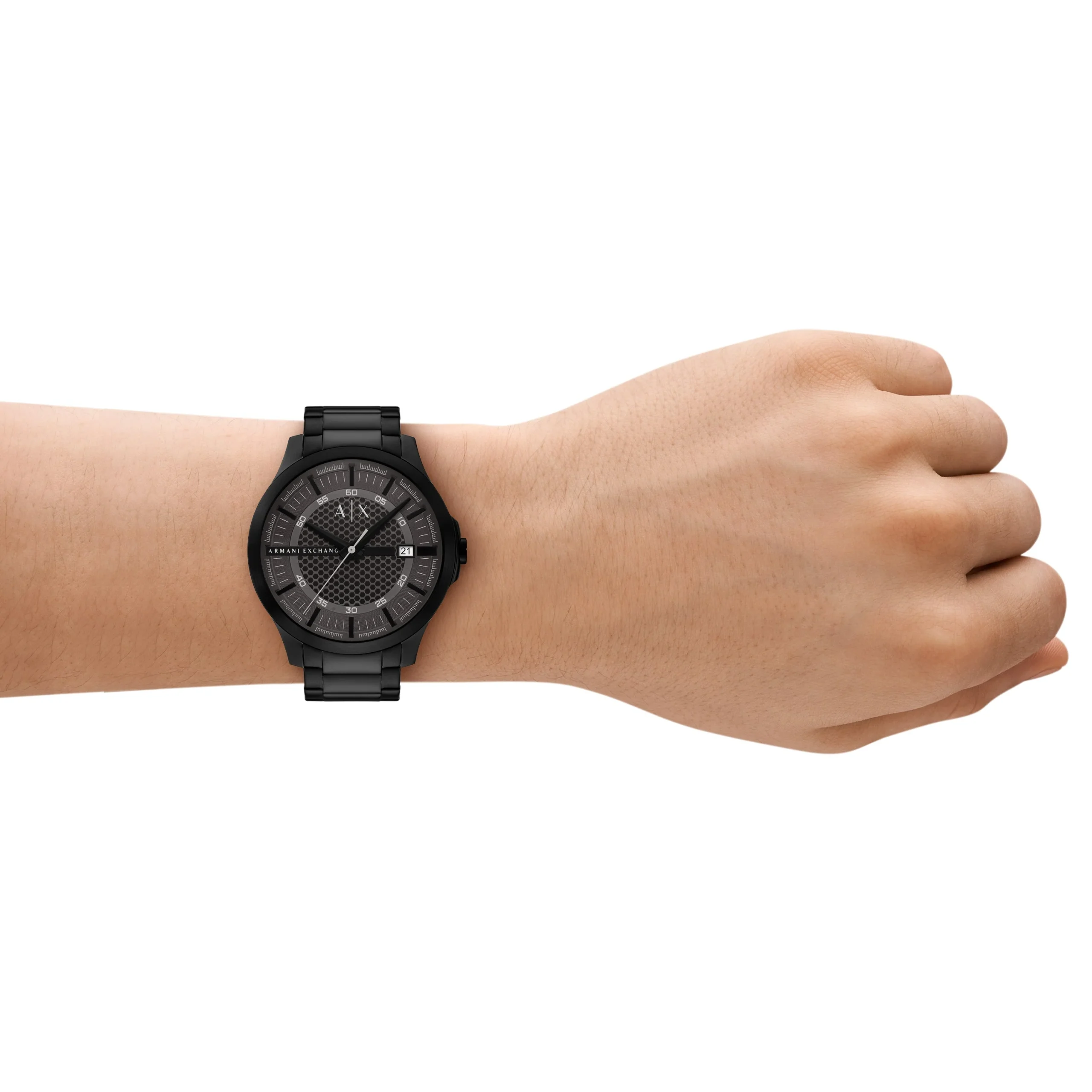 Crafted by Armani, the AX2464 men’s watch showcases refined minimalism with a bold presence. Its 46mm black-tone stainless steel case frames a textured gray dial, delivering a striking contrast that enhances both visual depth and legibility. The sleek three-hand quartz movement ensures reliable timekeeping, complemented by a discreet date window for added function. A smooth black stainless steel bracelet completes the design, offering durability and a seamless finish. With mineral crystal glass and 50 meters of water resistance, this timepiece blends everyday practicality with modern sophistication, making it an ideal choice for those who value understated style and precision craftsmanship.