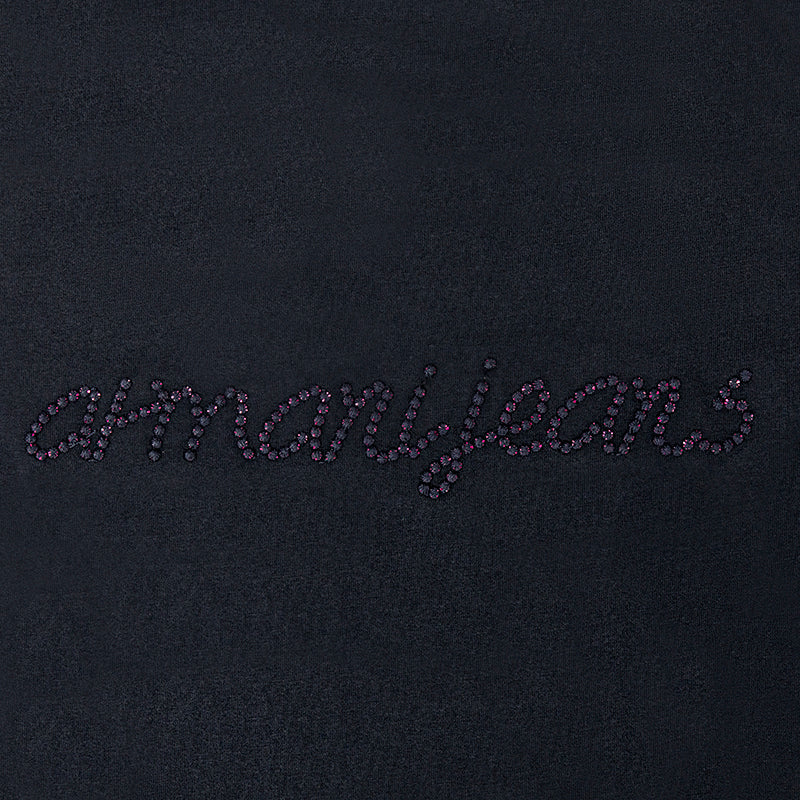 Step into the world of timeless style with the Armani Jeans Logo Long Sleeved Navy T-Shirt. This elegantly crafted piece for women showcases a classic round neck and long sleeves, ensuring a flattering fit for any casual setting. The rich navy hue is complemented by a pink sparkly Armani Jeans brand logo, offering a chic touch to your wardrobe essentials.