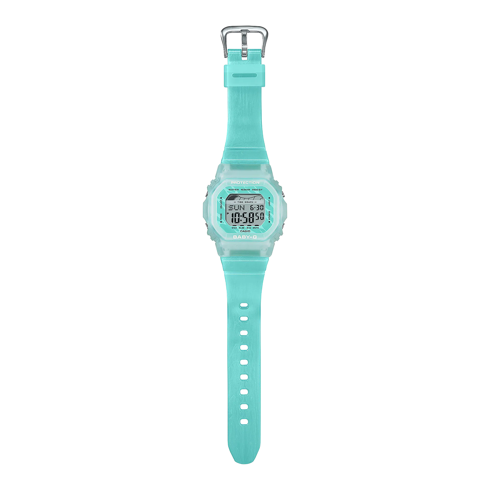 Slip into a bright, bold statement with colorful cases and bands that look great on any summer beach. The BLX-565S adds an extra touch to the band with marble patterning in mixed-color molding to create the effect of rippling water.