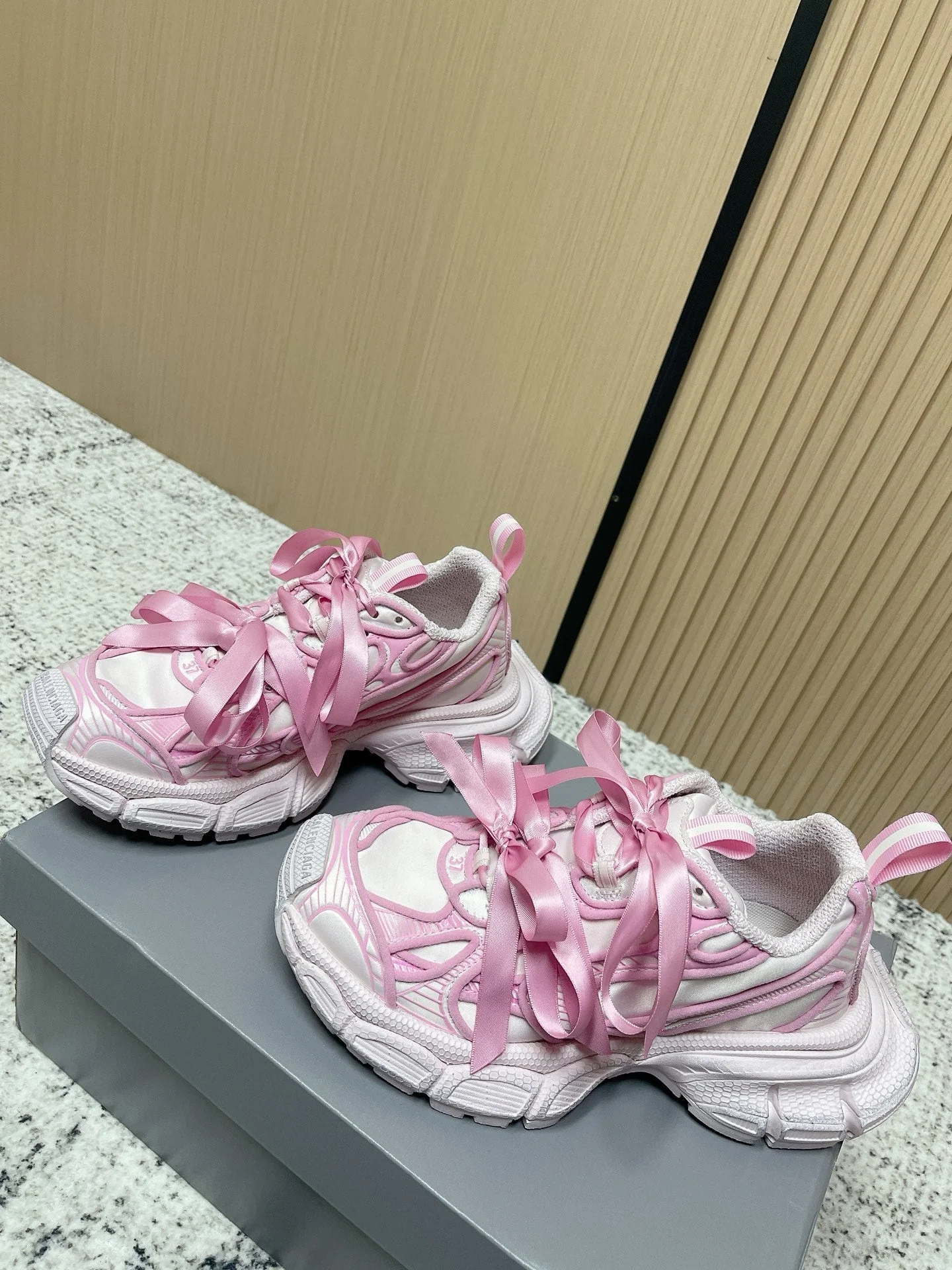 Balenciaga Sneaker Mesh Lace-up Light Pink Fabric 534184