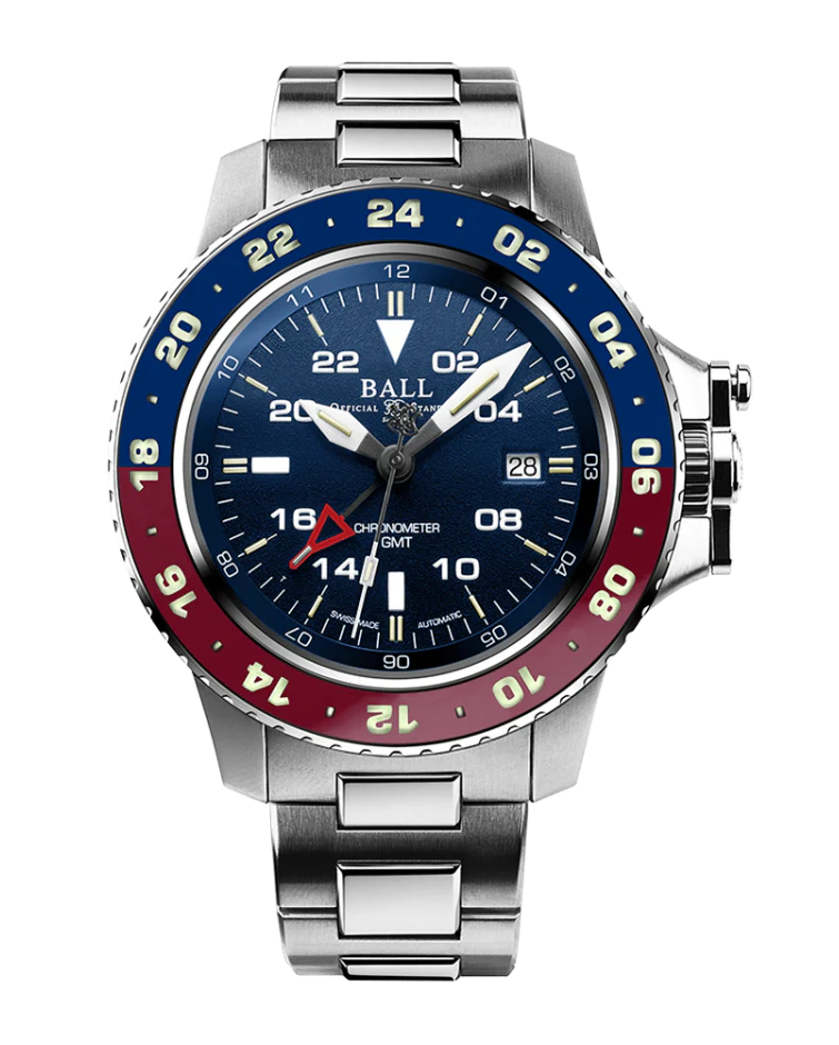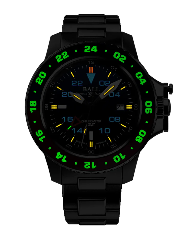The AeroGMT II offers a choice between a metal bracelet with BALL’s patented triple folding buckle that can withstand 1,400 newtons of force, and a rubber strap with a standard buckle. Both options are designed to comfortably fit with aviation apparel while complementing the bold bezel, thereby enhancing the pilot’s usability in form and function.