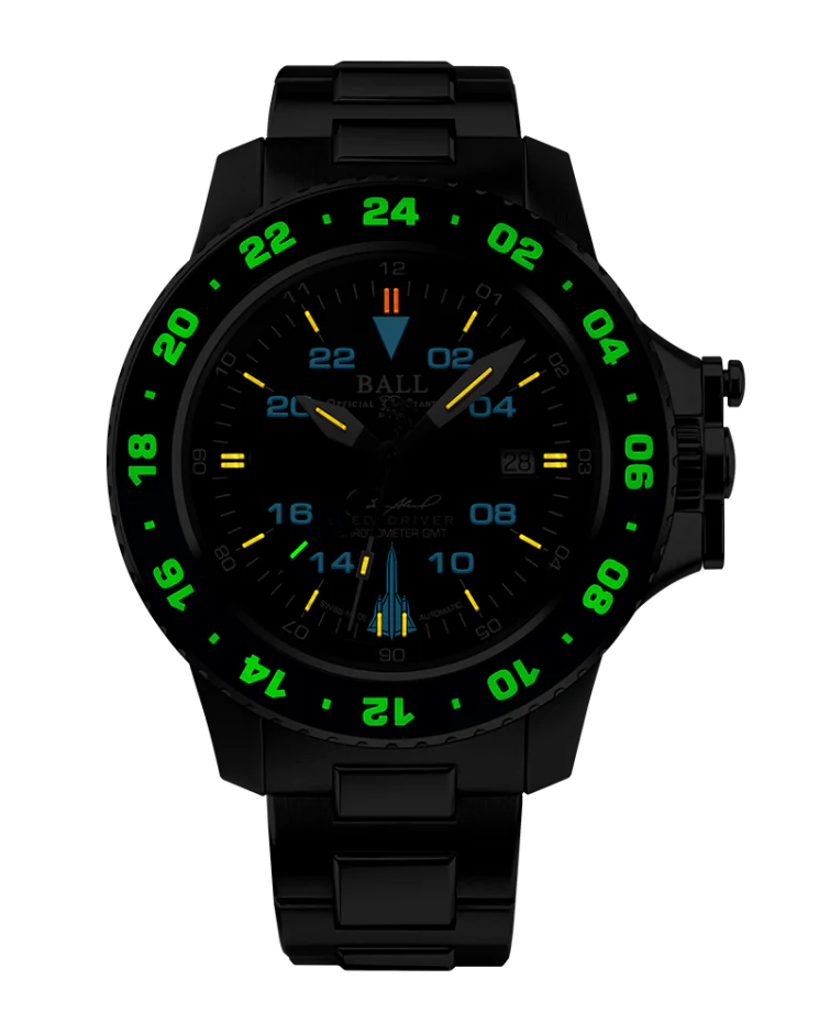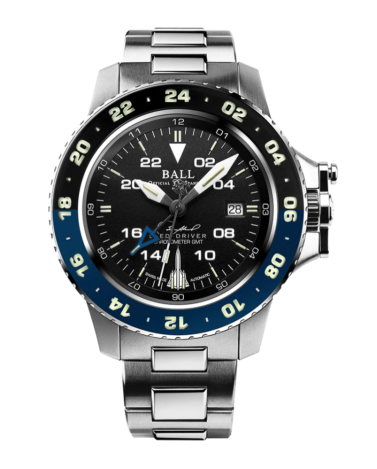 Combining rugged functionality with refined engineering, the Ball Engineer Hydrocarbon AeroGMT Sled Driver is a distinguished men’s watch crafted in tribute to Major Brian Shul and the iconic SR-71 Blackbird. Designed in stainless steel with a robust 42mm case, this limited edition timepiece features an automatic chronometer-certified movement and a black dial with luminous 44 micro gas tubes for unmatched readability in darkness. Its three-time-zone GMT functionality, along with a domed anti-reflective sapphire crystal and patented crown protection, ensures precision and durability in the most demanding environments.