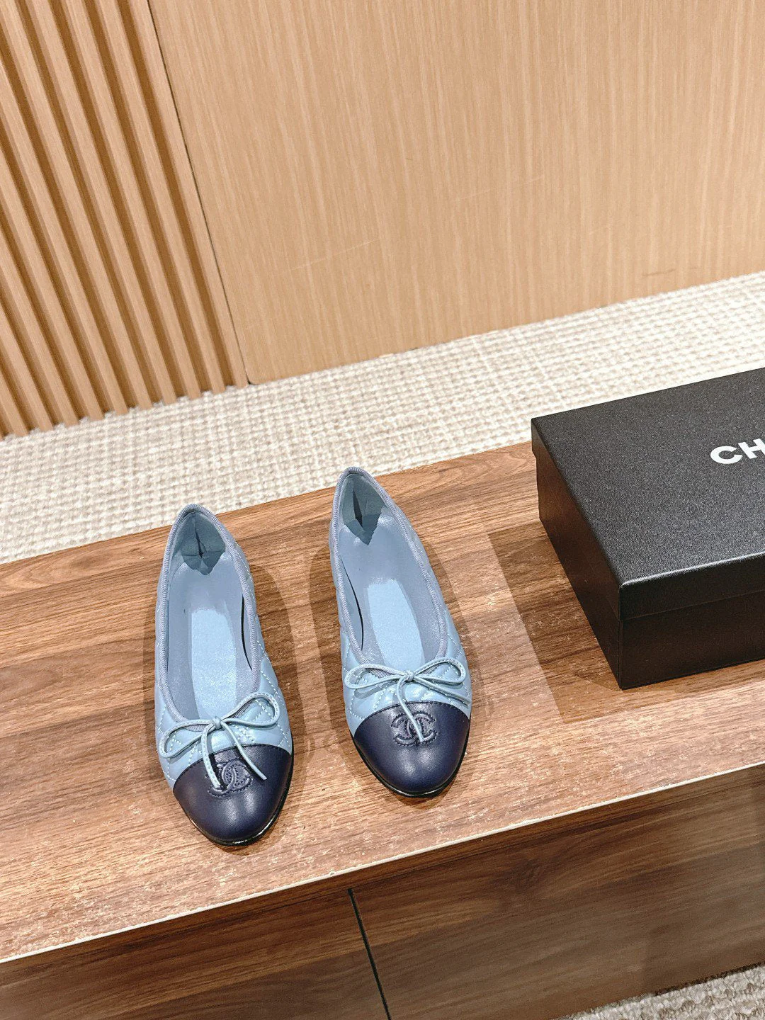 ballet flat baby blue quilted lambskin