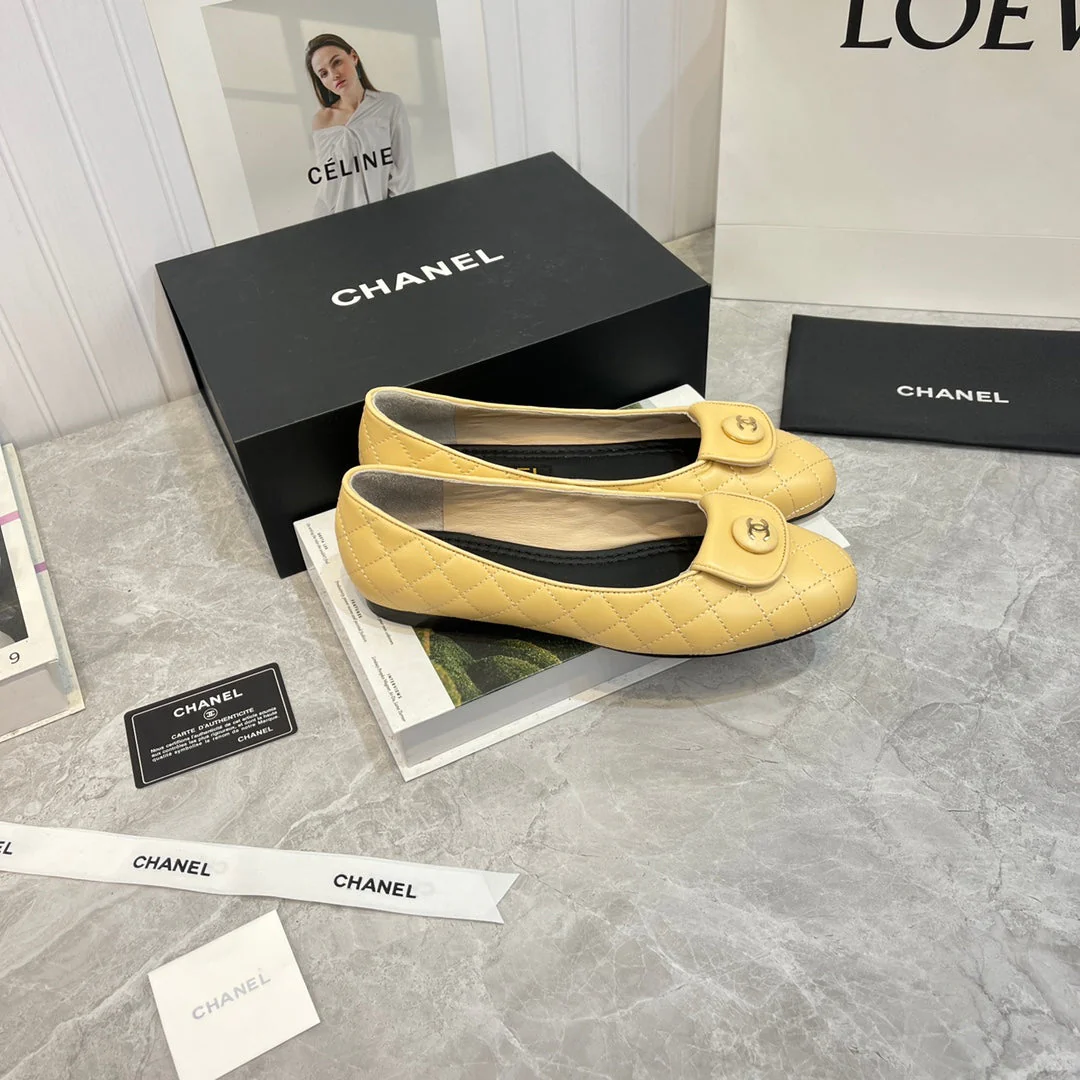 ballet flat beige black quilted calfskin