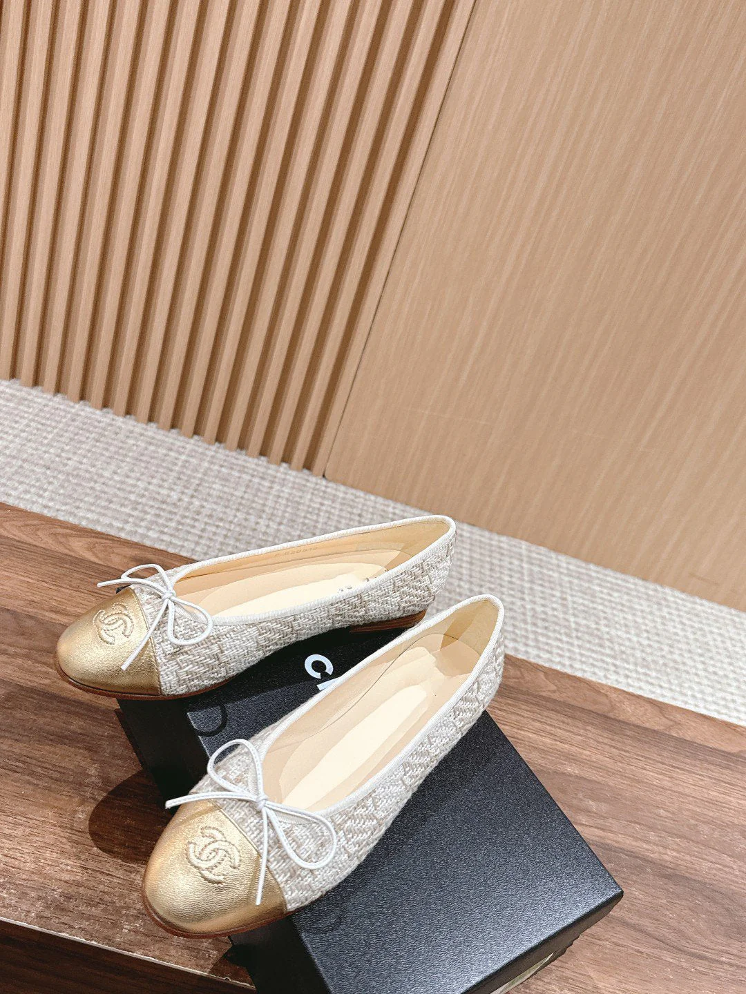 ballet flat grey textile gold metalic lambskin