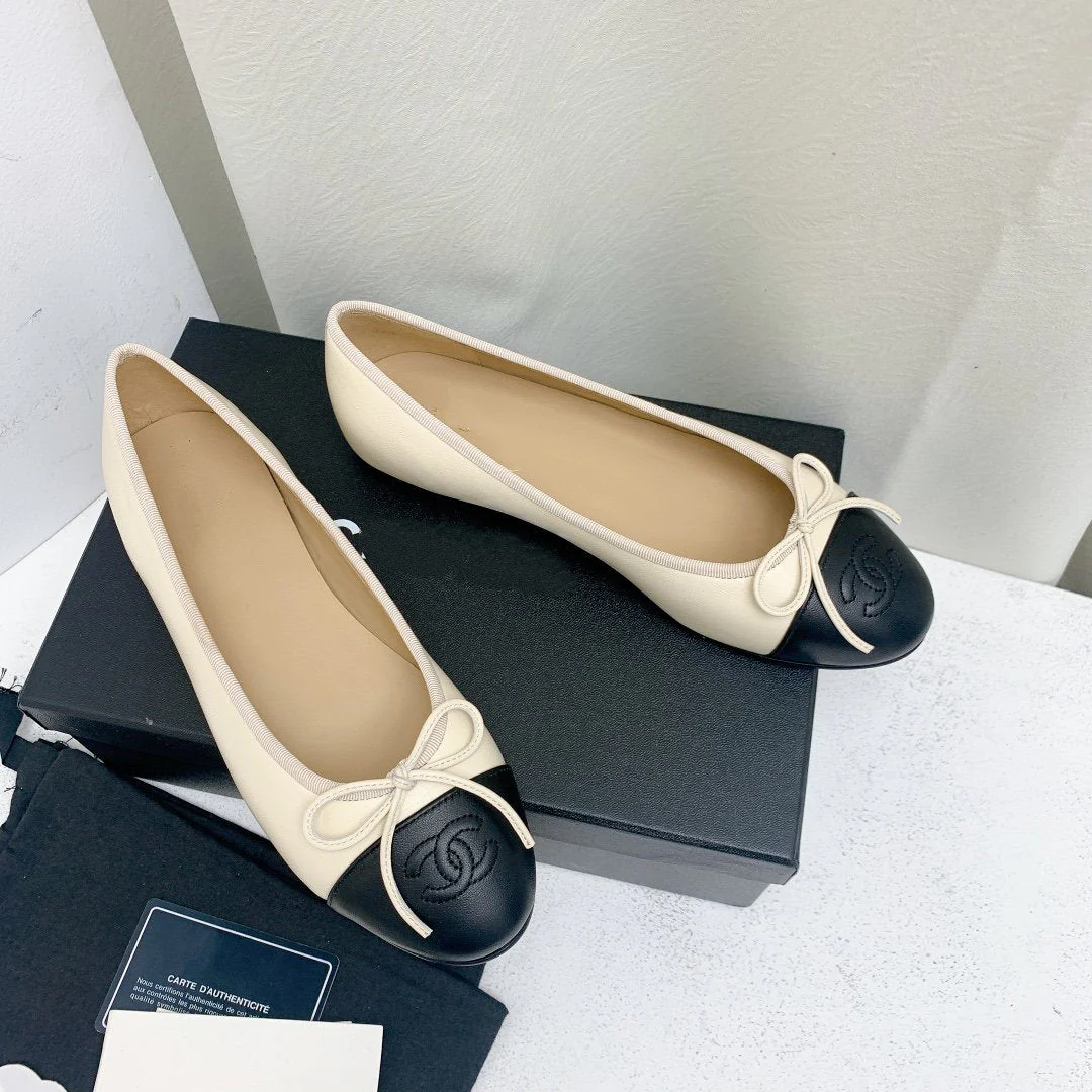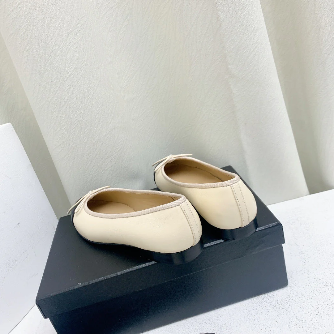 ballet flat light beige black lambskin