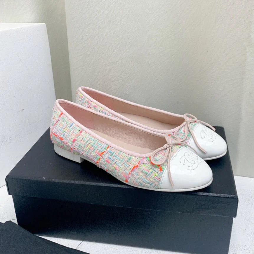 ballet flat pink red white tweed grosgrain