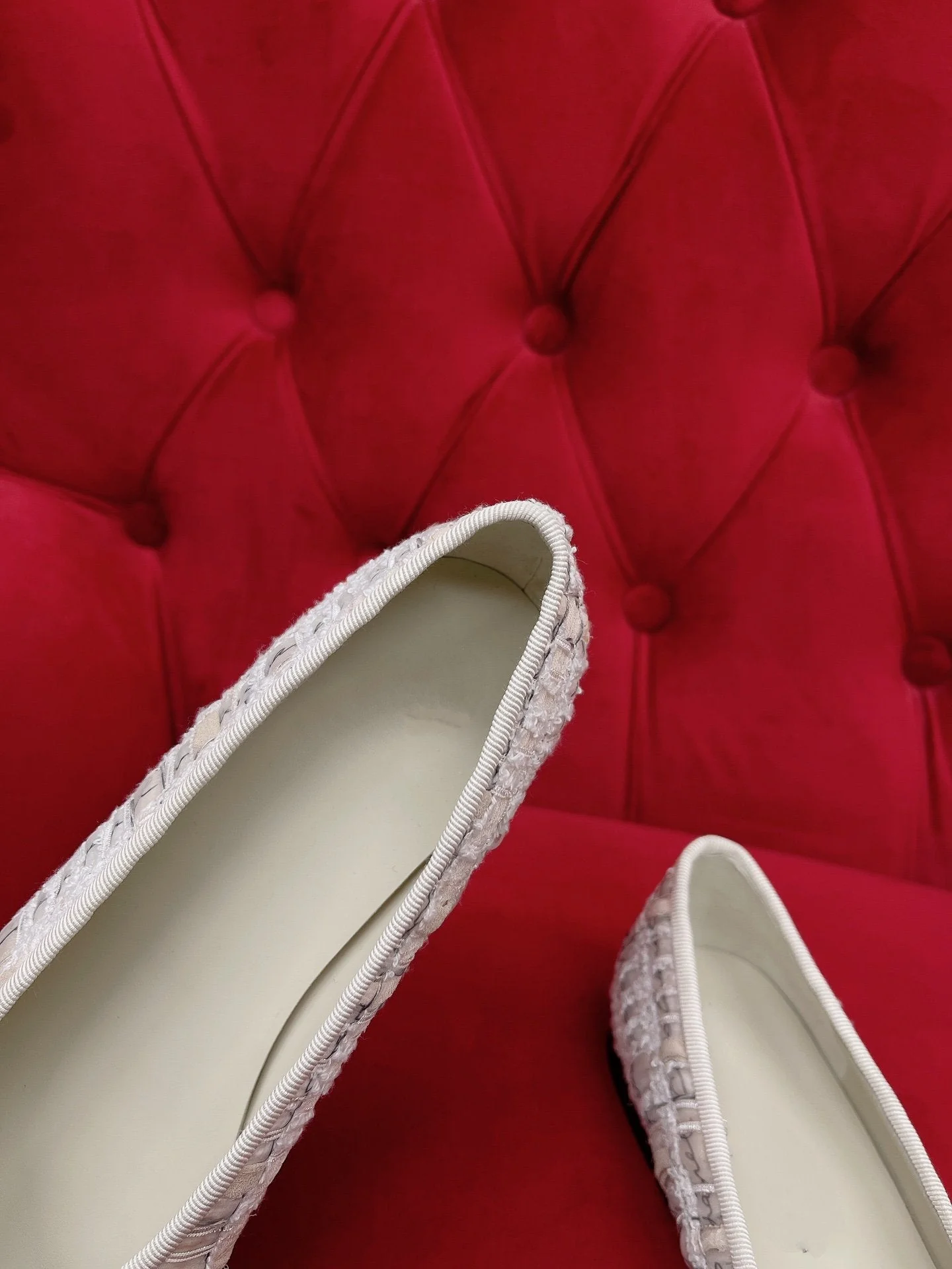 ballet flat white black tweed lambskin