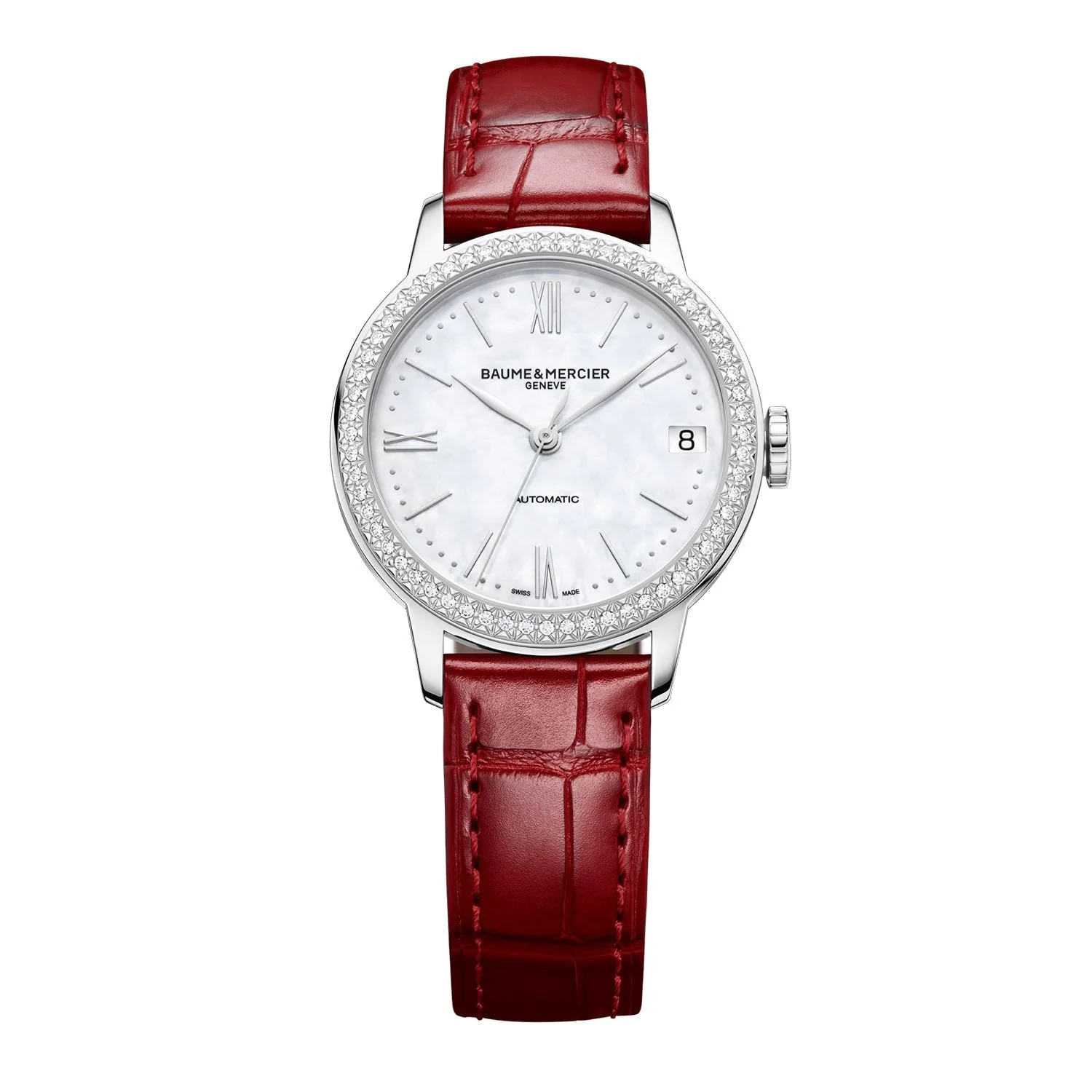 Experience the elegance of Baume & Mercier’s Classima Automatic 31mm Diamond Set Watch M0A10546. Featuring an automatic movement with a 38-hour power reserve, this luxurious watch is encrusted with diamonds around the bezel. Crafted with Swiss-Made excellence, it is a must-have for any timepiece enthusiast.