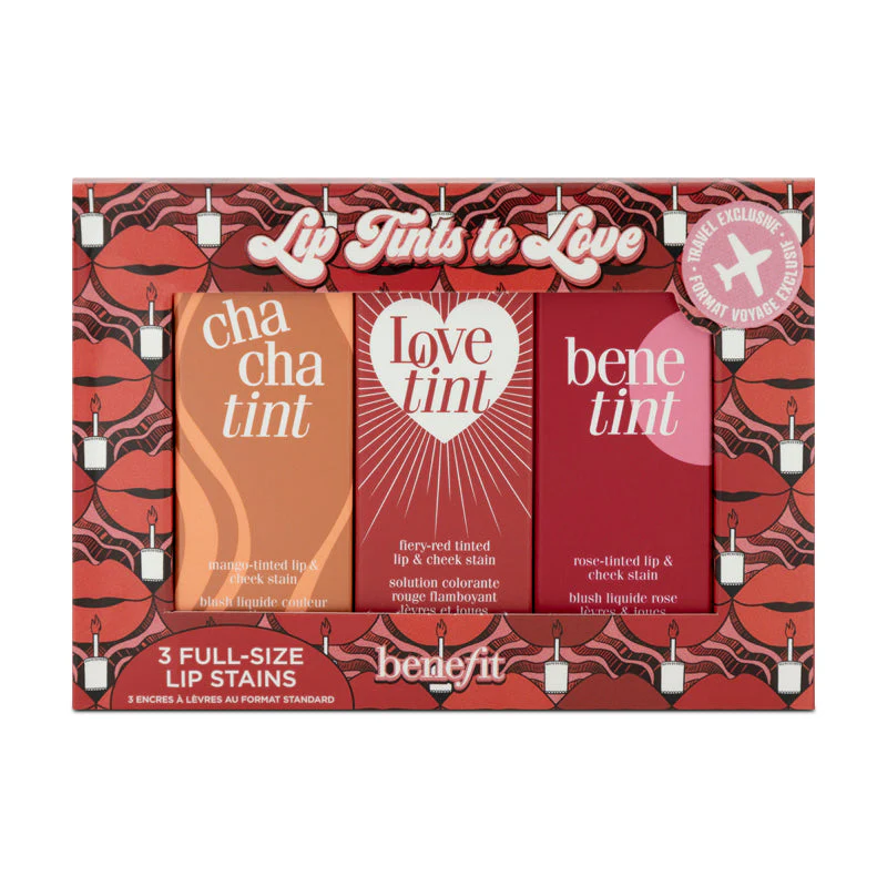 Experience a blend of vibrant shades with the Benefit Lip & Cheek Stain Make-Up Set, offering three full-sized tinted stains in mango, fiery red, and rose. This versatile set is ideal for enhancing your natural beauty, providing a sheer and vibrant finish suitable for all complexions.