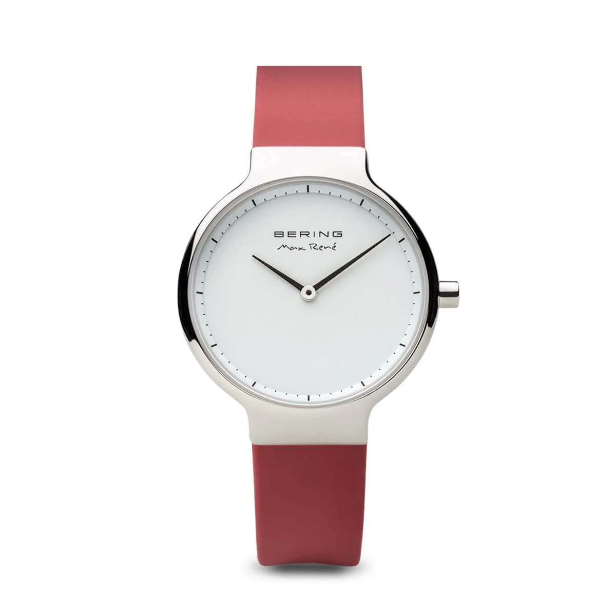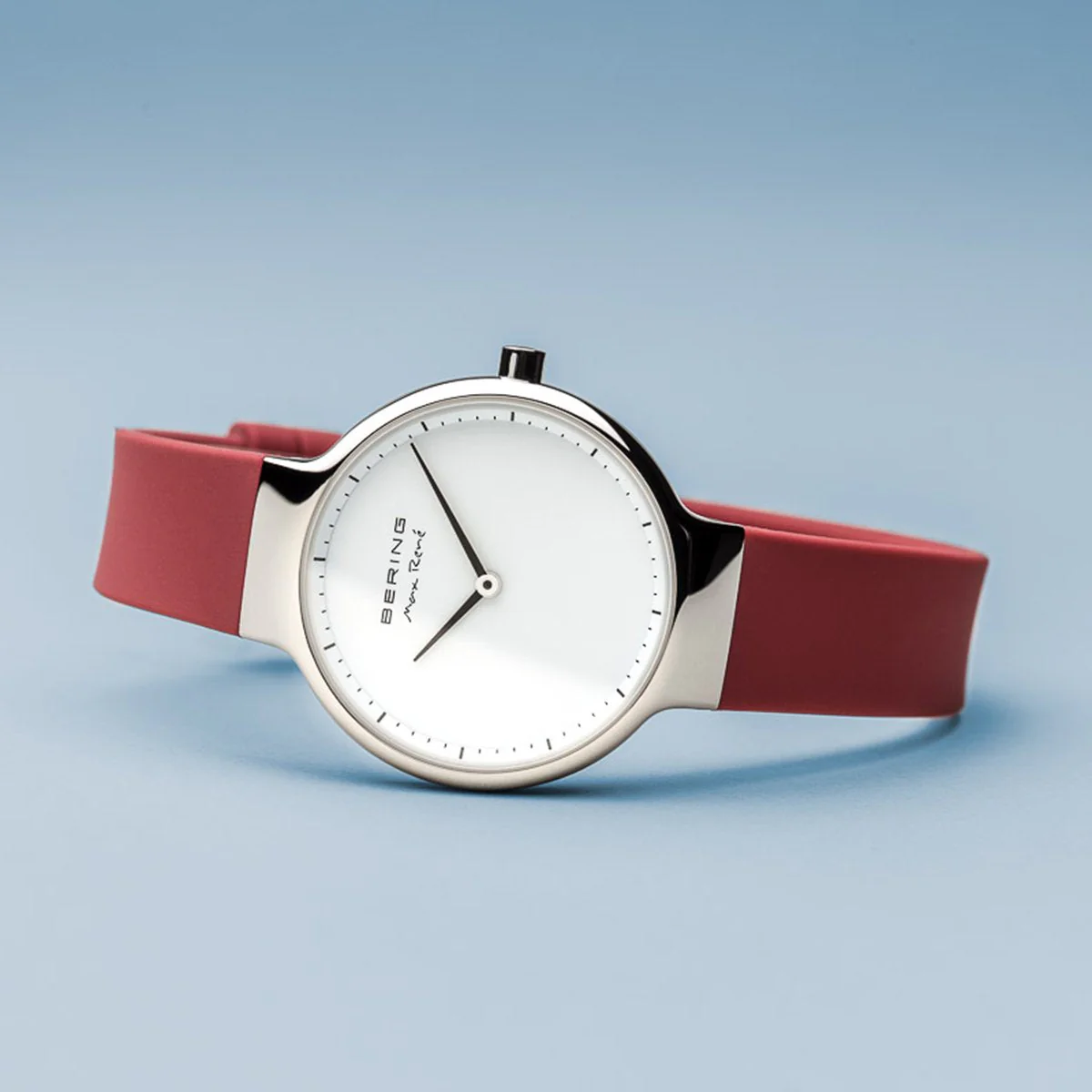 The dial is distinguished by its elegant simplicity and is protected by an especially hard, crystal clear and scratch-resistant sapphire crystal. A matching red coloured silicon strap makes for a strikingly modern accent. The original contrast of the red coloured silicon strap emphasizes the watch perfectly.