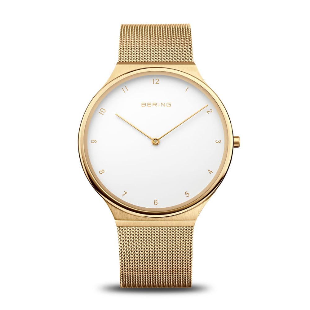 Bering Ultra Sim White Dial Gold Milanese Strap Women Watch 18440-334