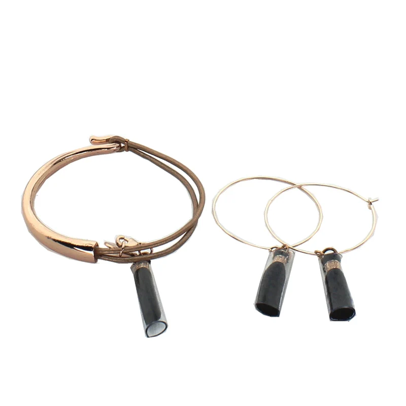 Discover the timeless elegance of the Boho Betty Haine Tassel Bracelet & Tassel Earring Set in stunning rose gold. Perfect for the modern woman, this classy jewellery gift set features a bangle bracelet and hoop earrings designed to complement any outfit. The elegant contrast of black tassels with the rose gold and part-leather bangle adds a chic, stylish finish.