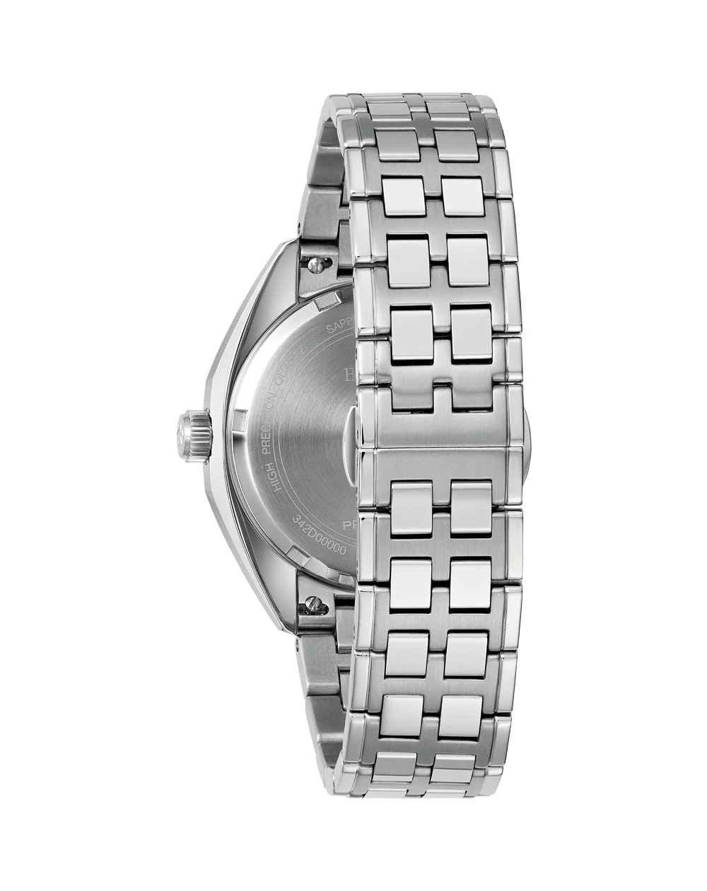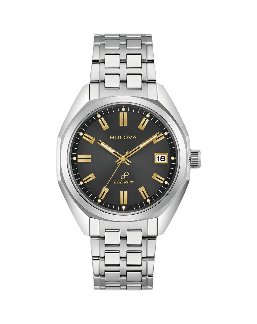 Designed for refined taste and daily versatility, the Bulova Classic Jet Star Stainless Steel Black Dial Watch 96B415 blends precision with modern elegance. This women’s watch features a sleek stainless steel bracelet and case, paired with a bold black dial accented by gold-tone markers for a timeless, sophisticated look. Protected by a sapphire crystal and powered by a reliable quartz movement, it ensures durability and accuracy in any setting. A 40mm case size offers a balanced presence on the wrist, while 50-meter water resistance adds everyday practicality. A perfect fusion of premium craftsmanship and classic style in the watches category, this timepiece makes a lasting impression.