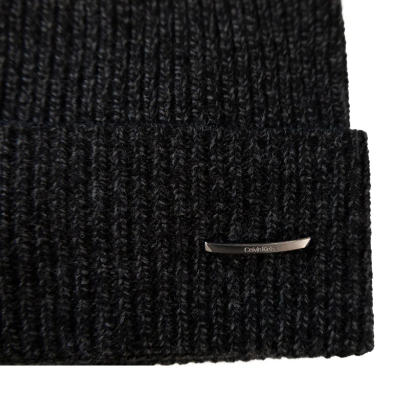 Calvin Klein Pyramid Plaque Beanie Hat Black – One Size