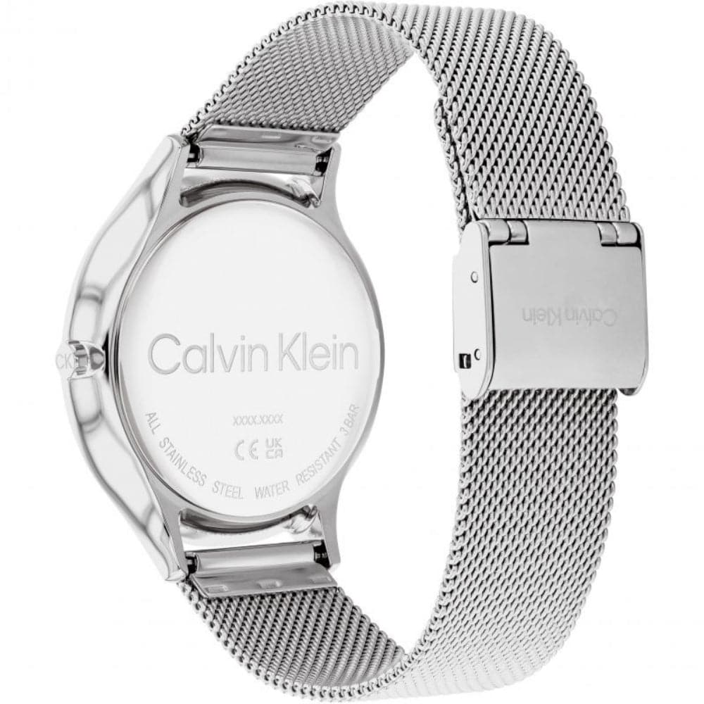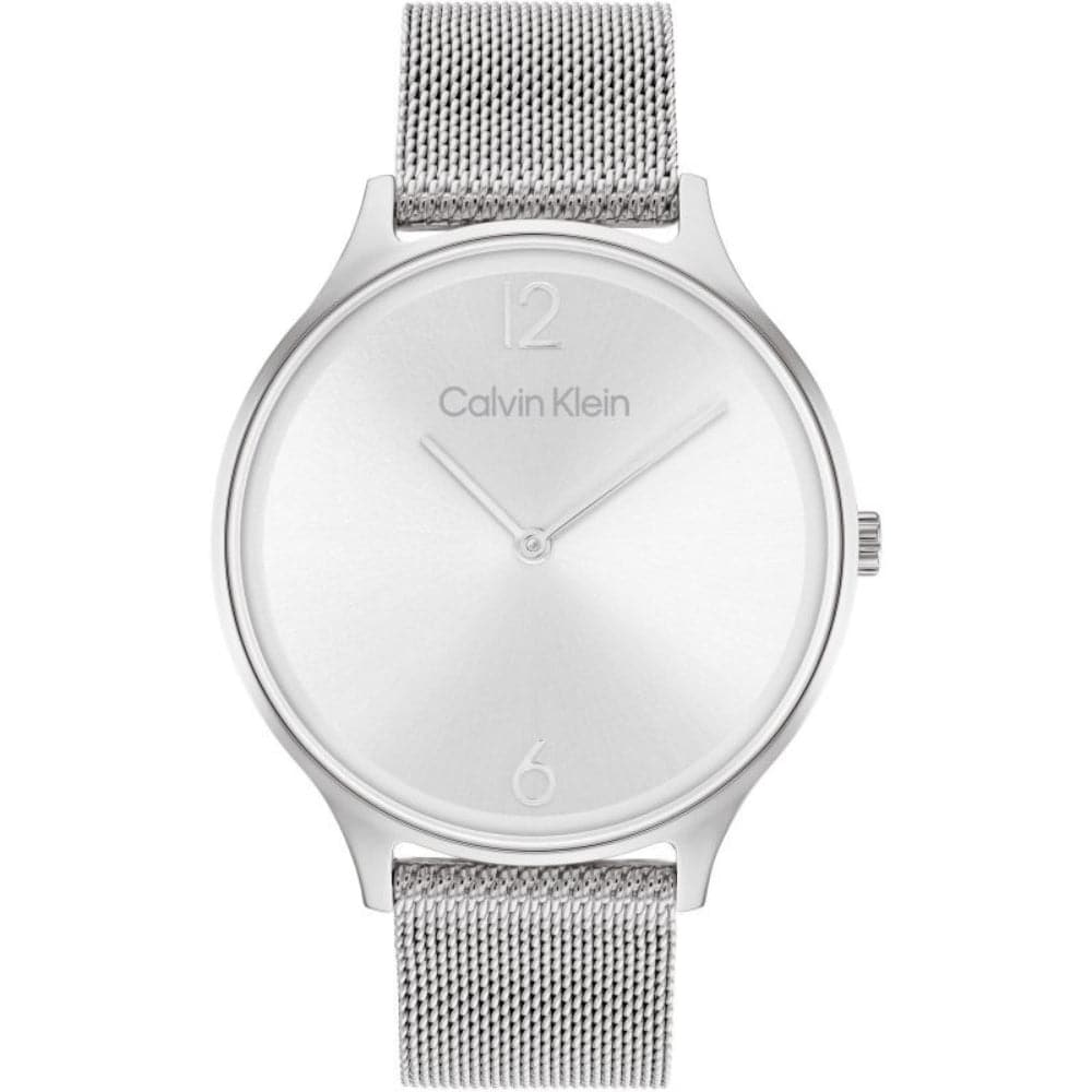 Women’s watch from Calvin Klein. Featuring a 38MM stainless steel case, silver sunray dial and stainless steel mesh bracelet.
