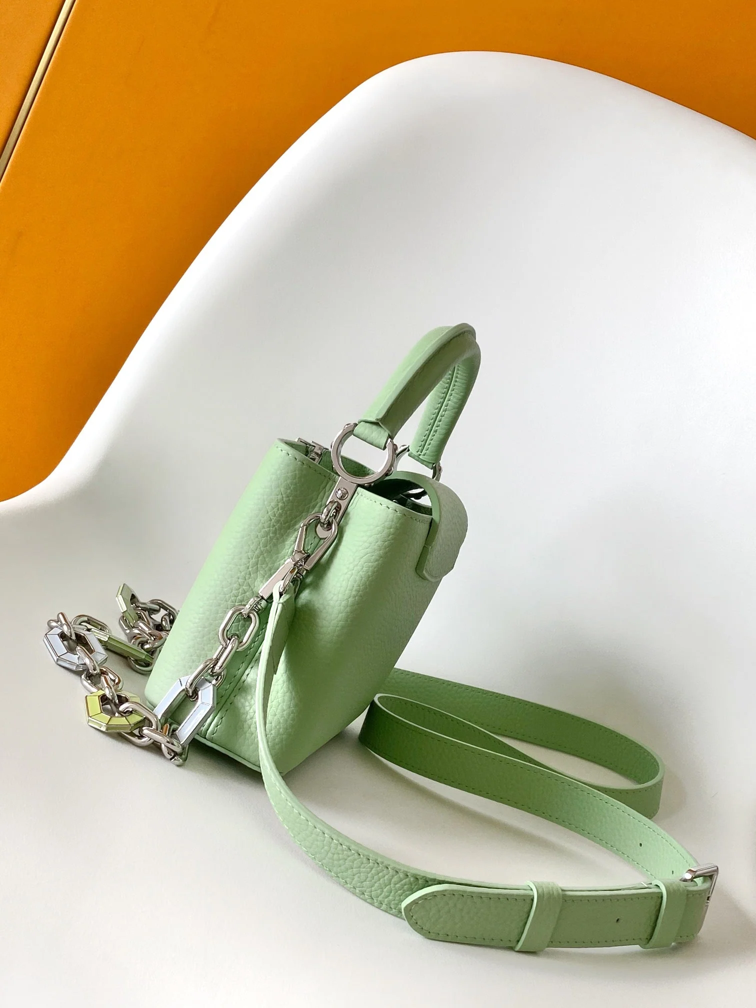 Capucines BB 21cm Bag Green Cowhide 251666